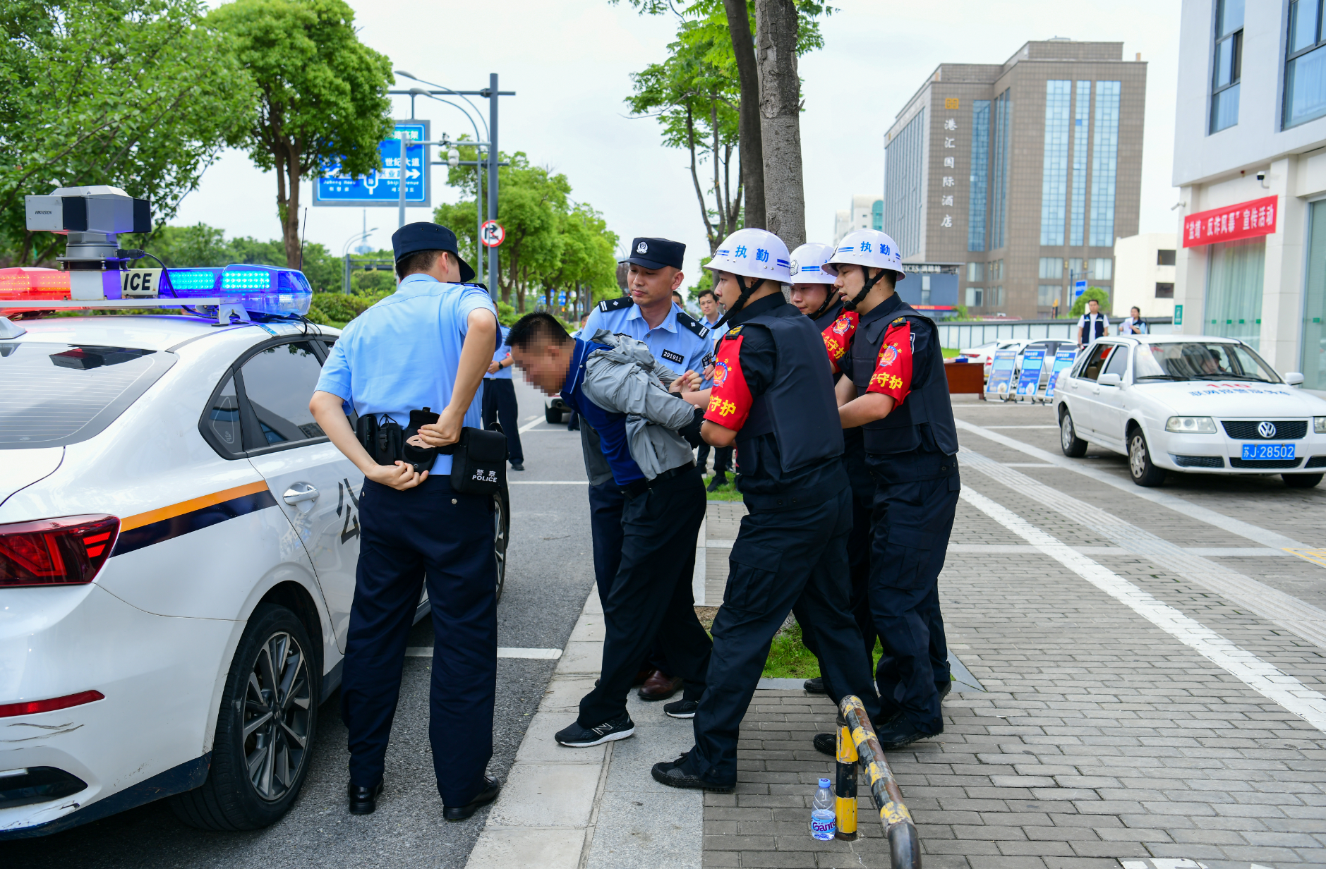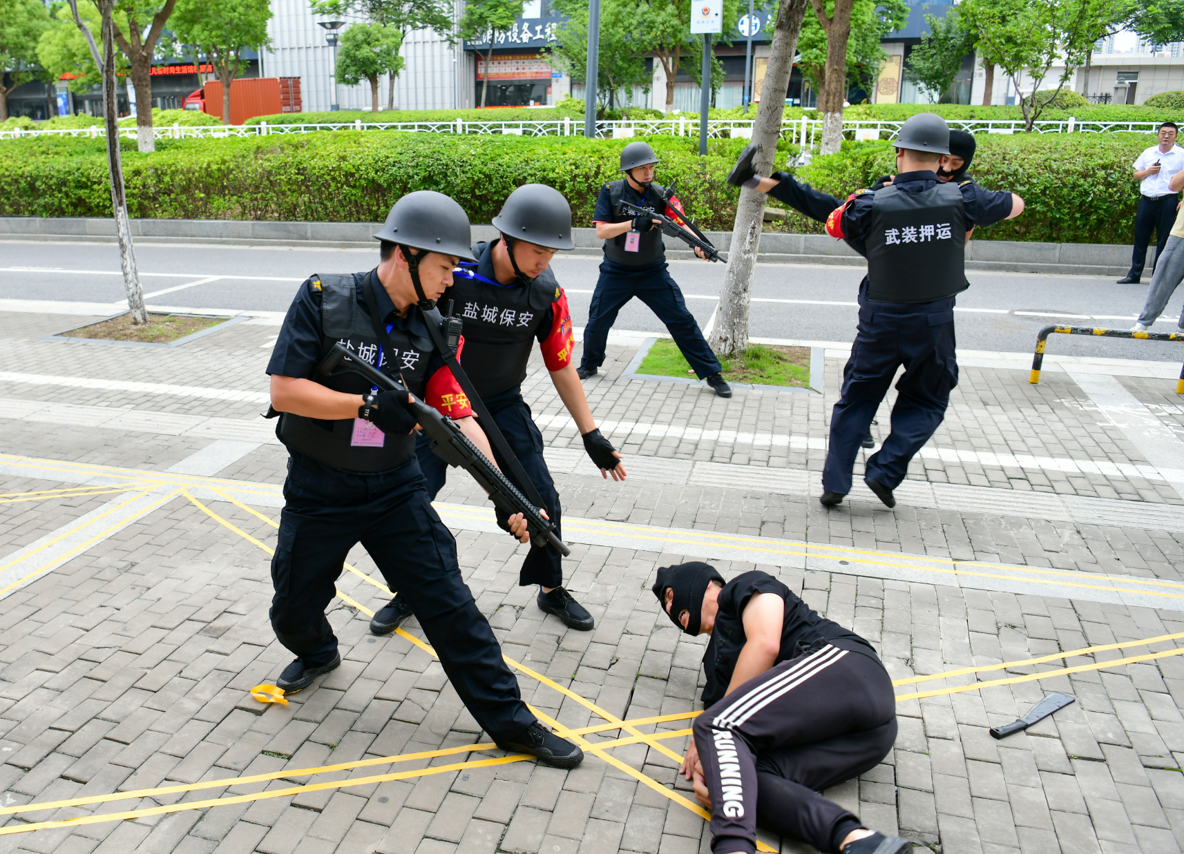 为进一步提高金融单位和全体守押人员、接处警人员的应急处置能力,预防和减少各类突发事件带来的损失和不良影响,6月26日下午,市保安服务有限公司联合农行盐城新都支行共同开展运钞车防抢劫及金融网点防暴恐接处警应急处置演练活动。盐阜大众报报业集团融媒体中心记者 杨毅 摄