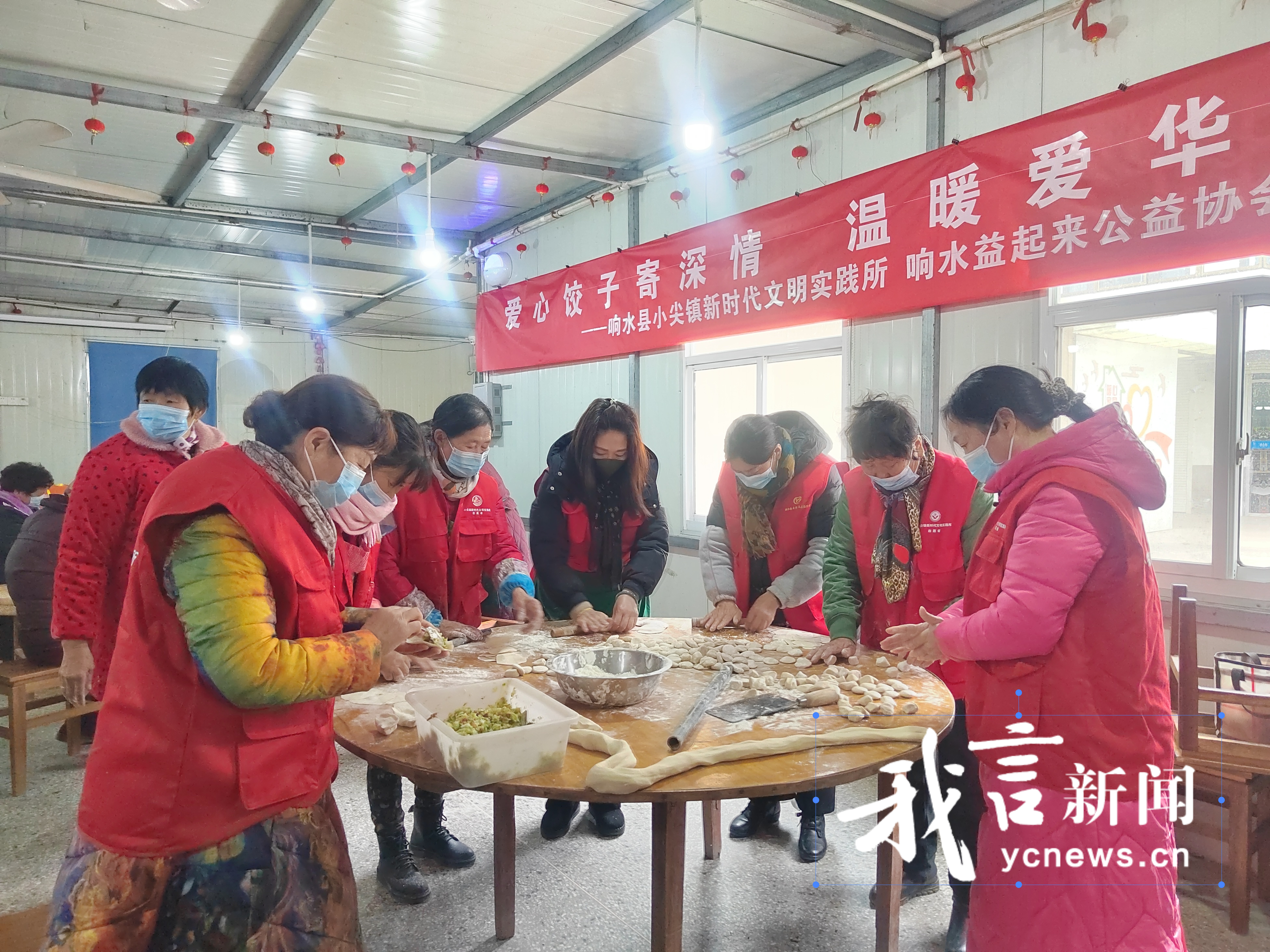 12月19日,在冬至即将来临之际,响水县益起来公益协会的爱心志愿者自带猪肉、大白菜、面粉等食材,来到周集社区爱华养老院,为那里的老人和残疾人包水饺,陪他们度过温馨的一天。