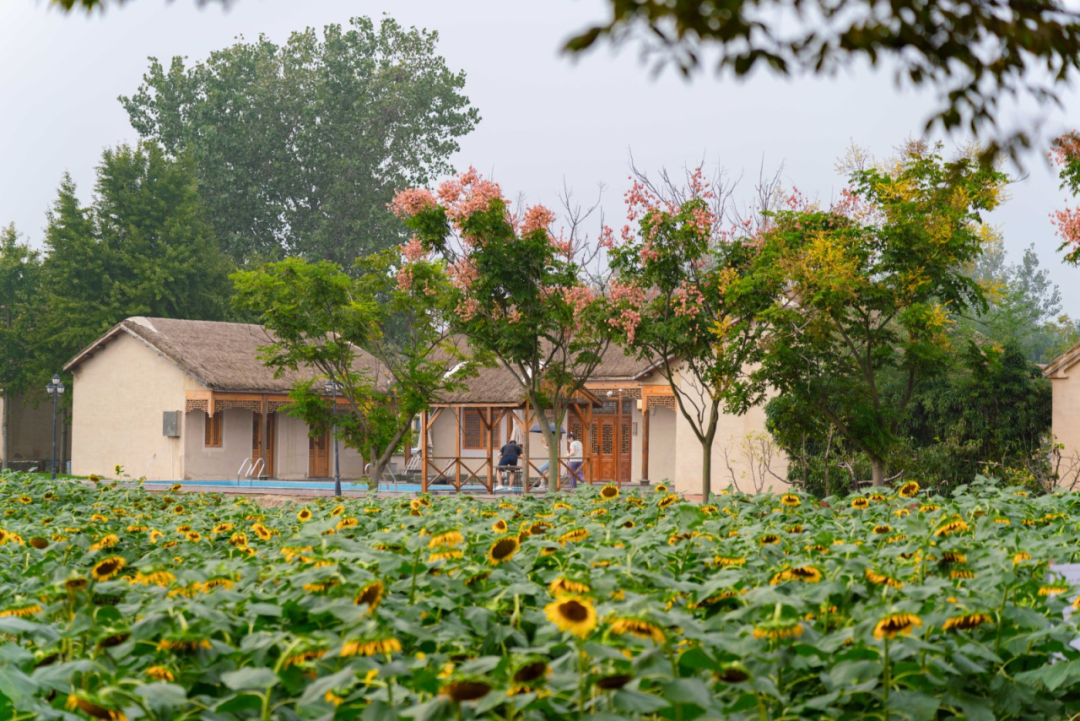对外合作注重高端化与国际化,与中书协、中美协、荣宝斋画院、波兰波兹南美术学院等机构建立合作关系,采用“留鸟+候鸟+栖飞”模式,吸引180余名中外艺术家驻点创作。艺术家以湿地、丹顶鹤等为题材,用艺术语言讲述黄尖生态故事,提升区域文化软实力。同时拓展“艺术+”业态,与单向空间等品牌合作打造文化综合体,使艺术村兼具生态展示与生活体验功能。对内强化与盐城国家级珍禽自然保护区的协同,在兴农村规划建设丹顶鹤友好农业示范基地,既为候鸟提供栖息环境,也通过生态稻米种植为村民开辟增收新路,实现保护与发展的良性互动。作为凝聚绿色发展合力的直观体现,艺术村对生态要素进行艺术化转化,金秋的向日葵花田与独具匠心的稻草艺术装置巧妙融合,在构筑热门打卡点的同时,更彰显了生态资源的多元价值,成为提升区域绿色品牌、汇聚内外发展共识的美丽媒介。