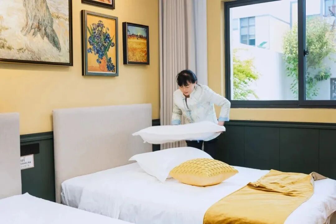 在国庆黄金周期间,潮间带艺术村文旅融合效应凸显,国际油画村民宿集群表现亮眼,出现“一房难求”的火爆场面。梵高民宿连续6天满房,每日收入稳定在600元以上;两棵杨树民宿作为“巾帼民宿标杆”,每日住宿收入达800元,民宿总营收达2.38万元,形成了“家家有特色、户户有故事”的民宿经济发展模式。东锦龙堂、单向空间内的国画展、楹联展与植物展雅韵十足;传统民俗表演彰显文化魅力。艺术村日均客流量稳定在3000人次,客房连续三天实现满房,整体平均入住率达87%。自助餐区域翻台率日均达7次/桌,文创产品单日最高销售额突破6500元,充分验证了“生态惠民”吸引力和可持续发展潜力。