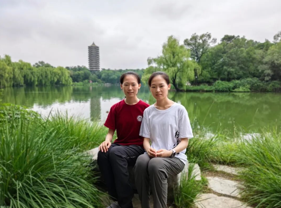 宋其真(左)、宋其优(右)在北京大学未名湖旁