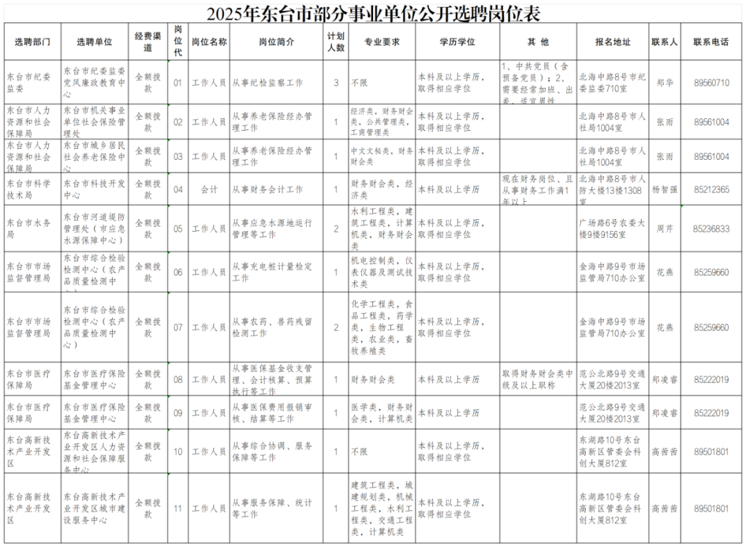 为拓宽选人用人视野,优化事业单位队伍结构,推动人才有序流动,根据工作需要,2025年东台市部分事业单位公开选聘工作人员15名。