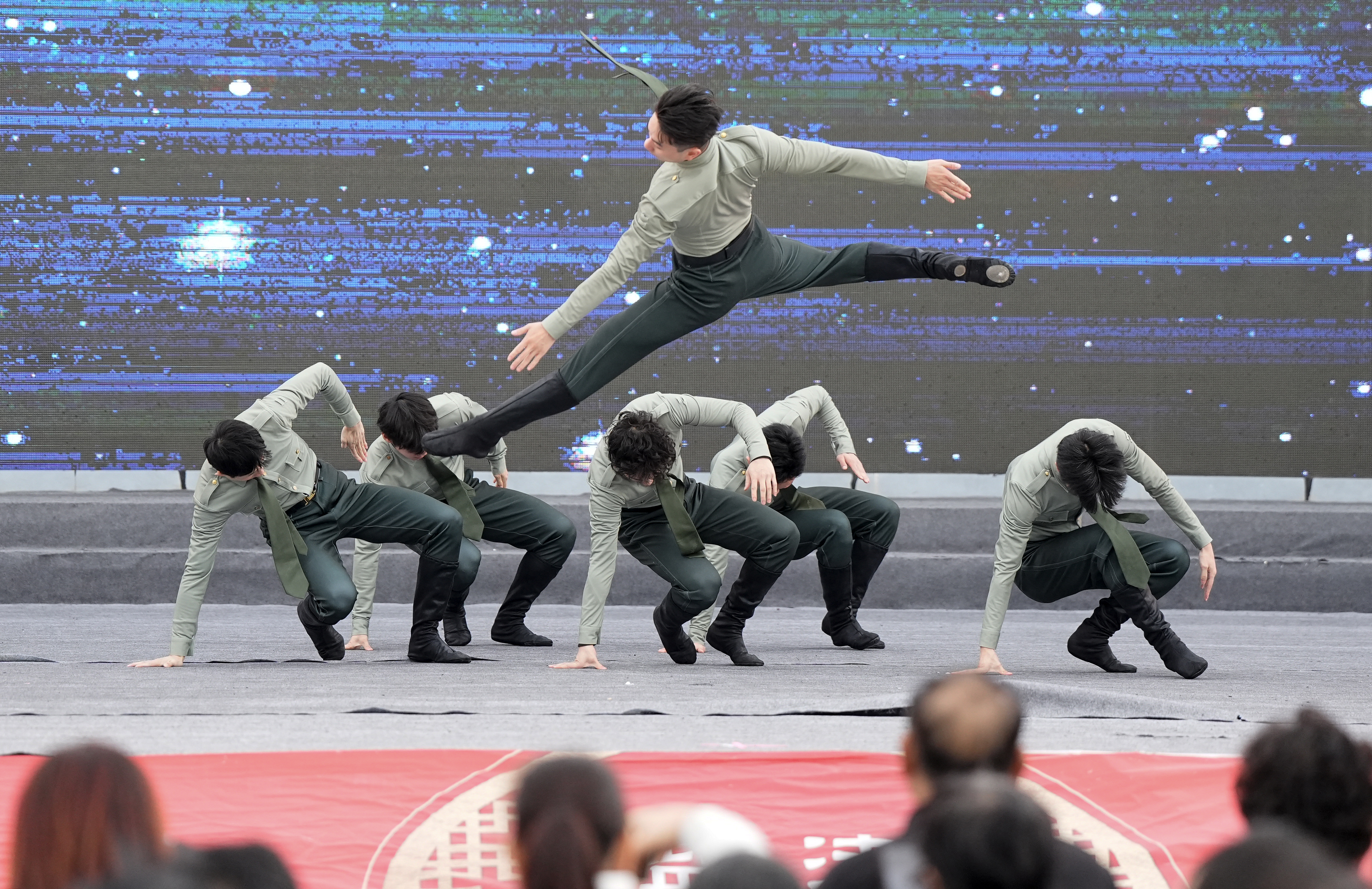 演出在男子群舞《出击》中拉开帷幕,省演艺集团歌剧舞剧院舞剧团的六位舞者以刚劲有力的舞姿展现出蓬勃朝气,瞬间点燃现场气氛。随后,歌手亢怿带来的歌曲《如愿》深情婉转,细腻的演唱赢得台下观众轻声和唱。独舞《天宫掠影》中,舞者欧阳菁用灵动的肢体语言勾勒出奇幻的天宫图景,将传统美学与现代舞蹈技巧完美融合。