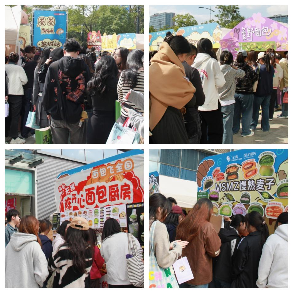 品牌多样化点燃全城“甜蜜热情”下午1点,所有面包准时亮相。精心制作的面包沿摊位铺展,多样化的烘焙品牌琳琅满目,目之所及全是攒动的人影,有的迫不及待地品尝刚入手的美味,有的则举着手机记录下这热闹的场景。