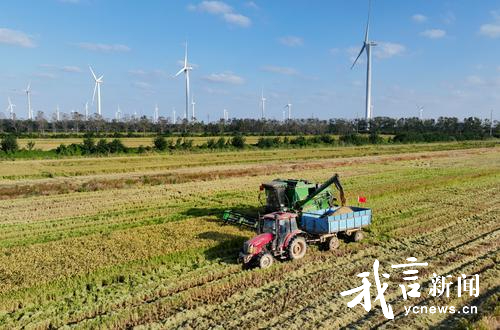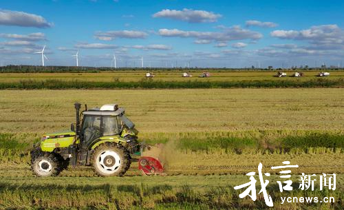 10月26日,位于射阳的省农垦淮海农场四分场29大队的田间和晒场上,职工正在操作各种农机。针对近期天气转好的窗口期,淮海农场组织农机作业队分片包干,按照区域成熟度梯度推进水稻收割;同步利用带有北斗卫星导航的耕、整地机械跟进耕翻散墒作业,实施秸秆还田,为大小麦播种作业奠定坚实基础。