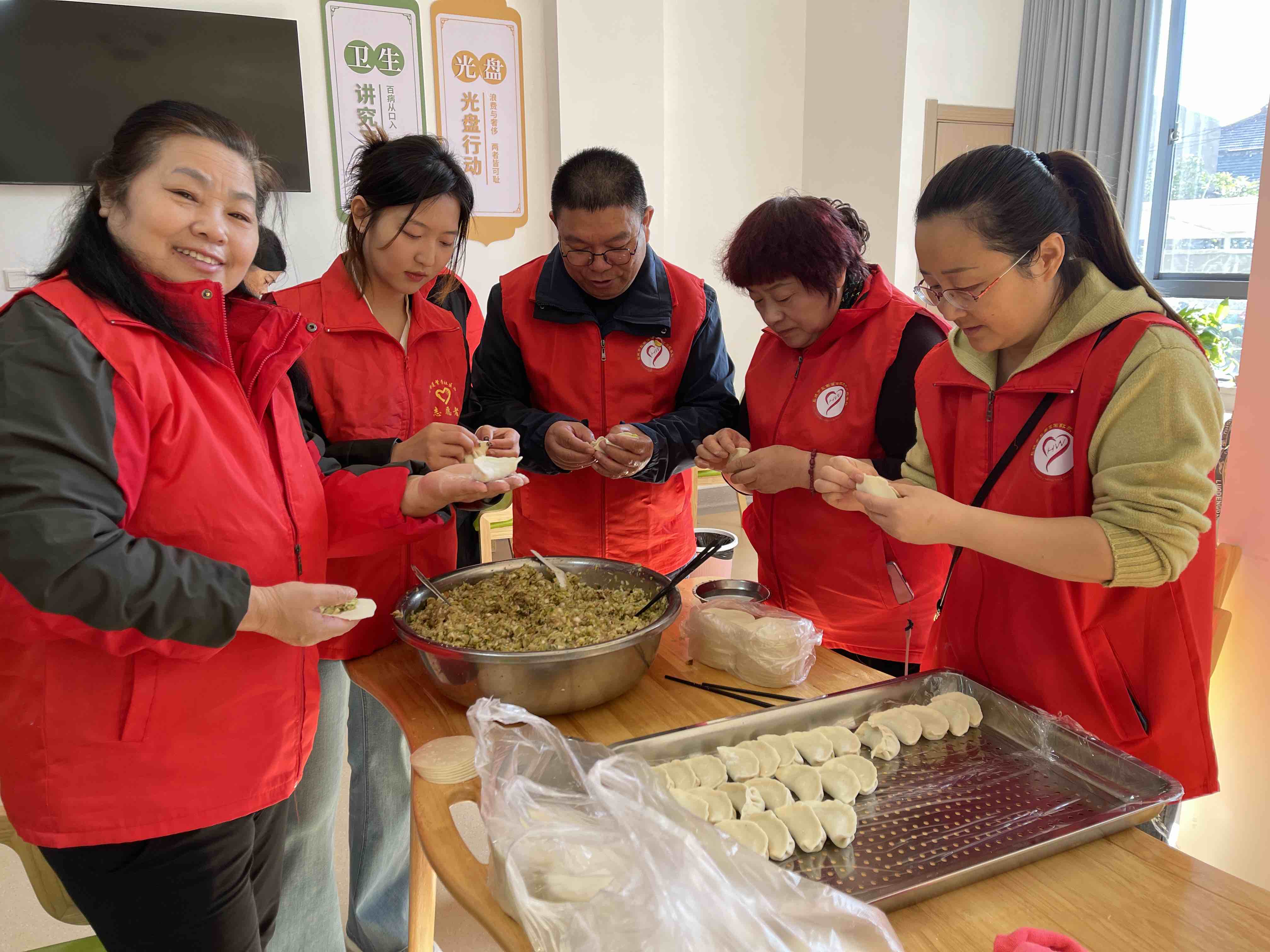 活动现场分工明确、井然有序。志愿者撸起袖子,和面、调馅、擀皮、包水饺,动作娴熟默契。一张张薄皮在手中翻飞,一个个饱满的水饺很快堆满托盘,雪白的水饺里裹着满满的关爱。另一边,理发区前老人们排起了队伍,专业理发师耐心询问老人需求,细致修剪发型,剪完后还细心地为老人清理碎发;血压测量区里,医护志愿者认真为每位老人测量血压,详细记录数据,叮嘱老人注意饮食和作息,解答健康疑问。