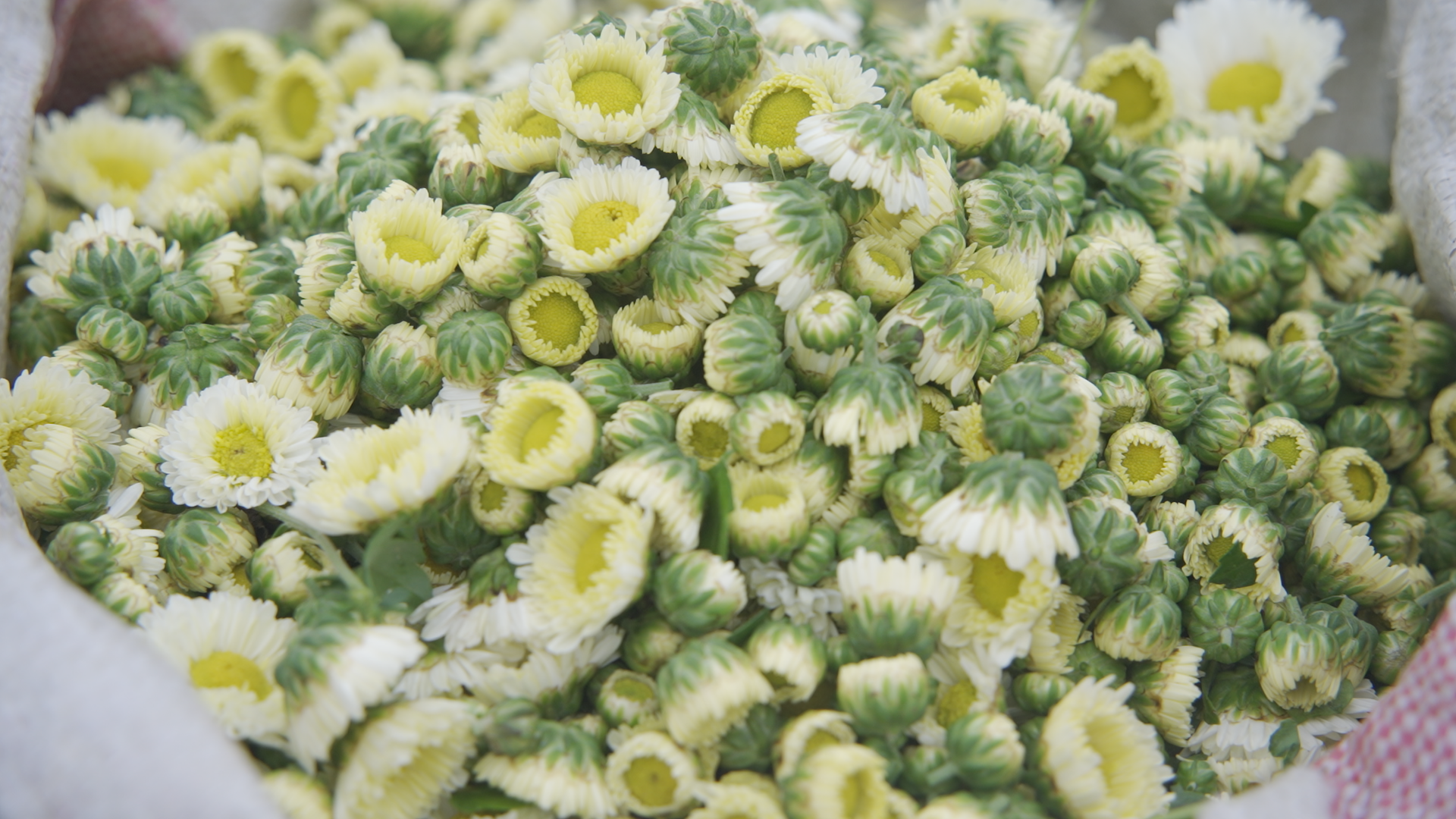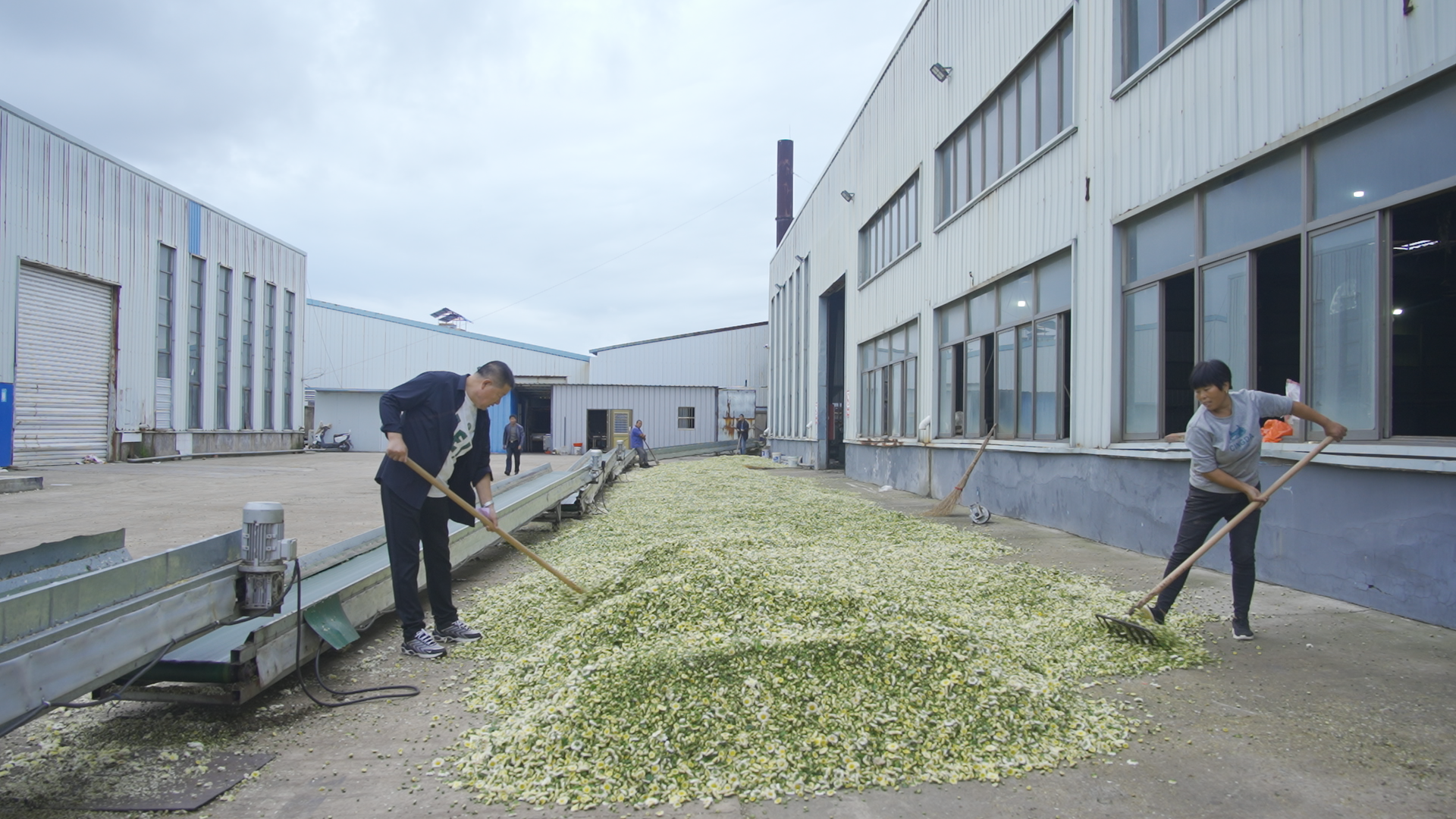 一筐筐刚采摘的菊花被迅速装车,运往镇上的收购点。收购点的热闹丝毫不逊于田间。上午九点,亚大菊花制品有限公司的院子里,运送菊花的车辆排起了队。工人们熟练地卸货、分拣,金黄的菊花在空地上堆成了小山。传送带嗡嗡作响,将新鲜菊花送进烘干车间,整个厂区都浸在浓郁的菊香里。