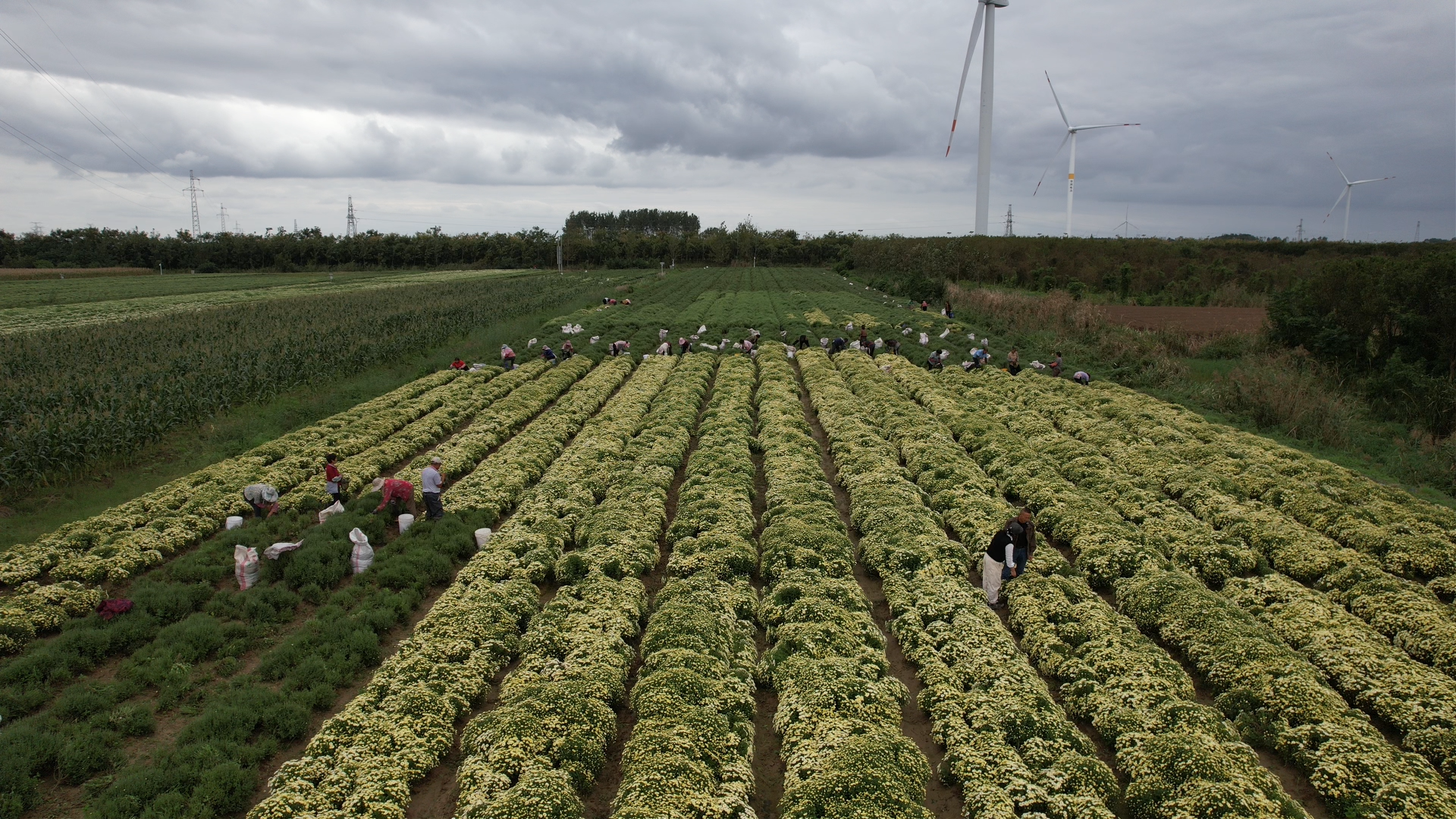 金秋的射阳县洋马镇,成了金色的海洋。3.5万亩药用菊花迎风绽放,连绵的花田里,菊农们弯腰采收,空气中弥漫着清甜菊香。