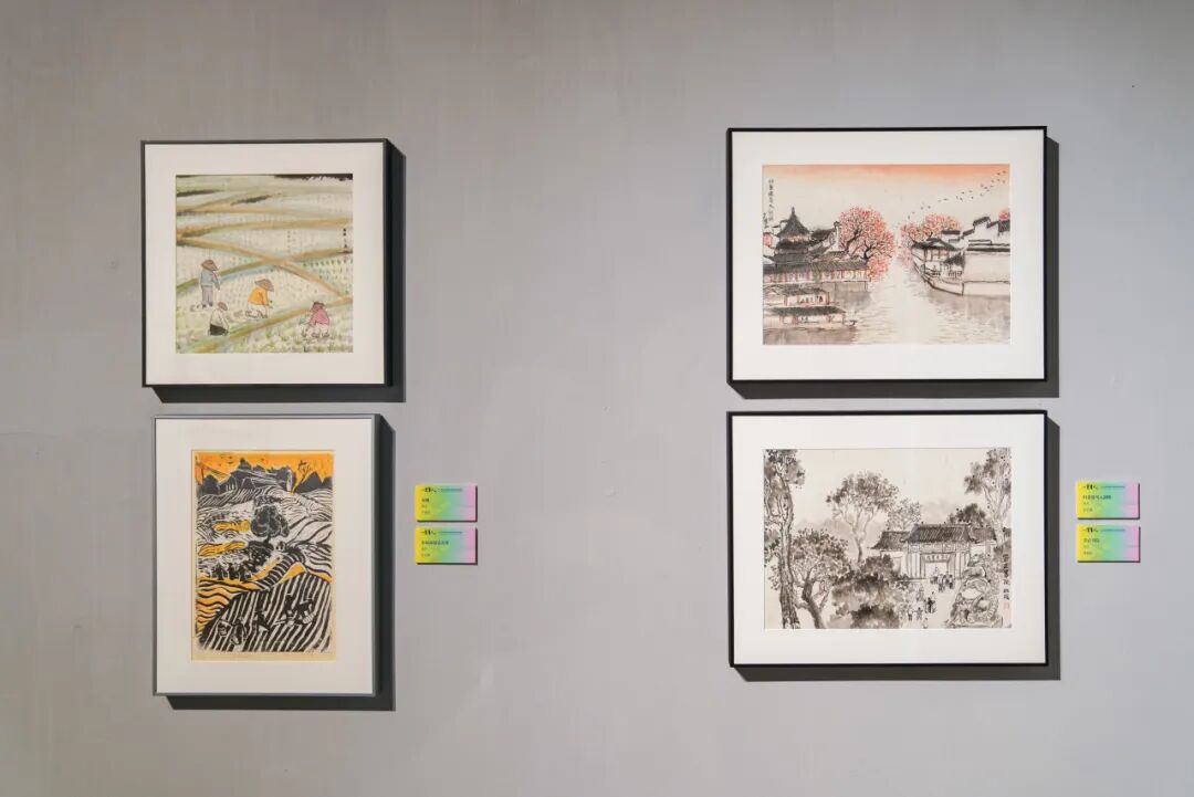 从水墨点染的江南园林到光影交错的运河风光,从非遗传承场景到市井生活百态,每一幅作品都凝聚着青少年对家乡的深情。展览现场,一幅幅充满想象力的作品吸引观众驻足:有的以稚拙笔触刻画田间劳作,有的以现代构图呈现古镇新貌,更有作品借助抽象符号表达对美好生活的思考。这些创作虽技法尚显青涩,却饱含真诚与生命力,体现了“以美育人”理念的积极影响。