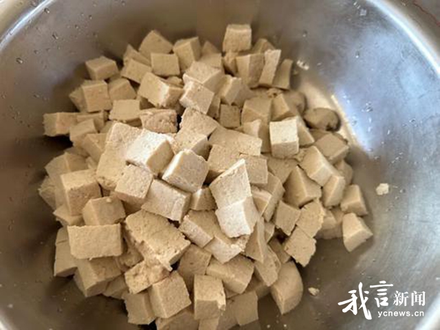 “素食馆里就餐者以老人居多,他们牙口不好,手工豆腐可以凉拌,也可以热炒、煎炸或炖煮,正好适合他们。”朱荣兰说,这些方正厚实的老豆腐,微黄的色泽透着黄豆本真的香气。表面纱布过滤的痕迹,是传统工艺的印记。将豆腐切丁时,其扎实绵密的质地和醇厚豆香,令人赞叹,连原浆豆腐水都因透着香味而被保留。