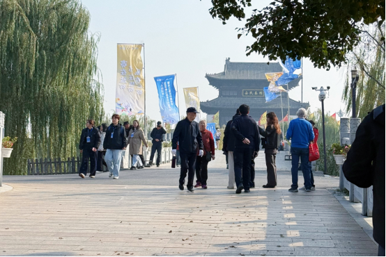 11月15日上午8:30,大纵湖东晋水城城门广场气氛热烈,赛事开幕式在此举行。