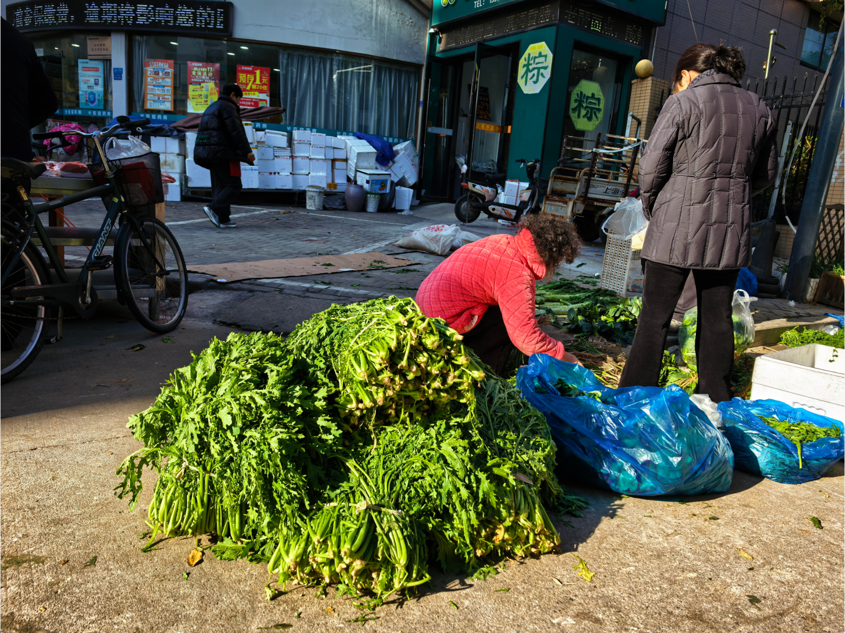 这浸润着时光的传统,也吸引许多年轻人亲手尝试。36岁的张颖就是其中一位。“以前都是看长辈做,今年我特意在小红书上找了教程,准备自己动手。”她边说边挑选着雪里蕻,“带孩子一起参与,让他看看新鲜的蔬菜怎么变成可口的小菜,这比书本上的知识更鲜活。”她已经开始期待,用自己腌的萝卜干搭粥下饭,腌的雪里蕻炒冬笋、炖豆腐,那定是记忆中的美味。