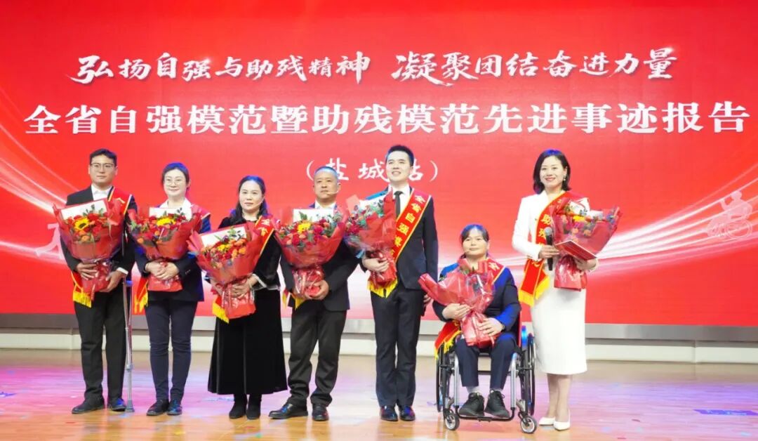 报告环节后,全体模范代表共同献上诗朗诵《心声・感恩・同行》,真挚的情感、深情的演绎,道出了对伟大时代、对党和国家的深切感恩,以及与社会各界携手同行的坚定信念。省市残联领导为报告团成员献上鲜花,温暖与感动的氛围在会场久久回荡。