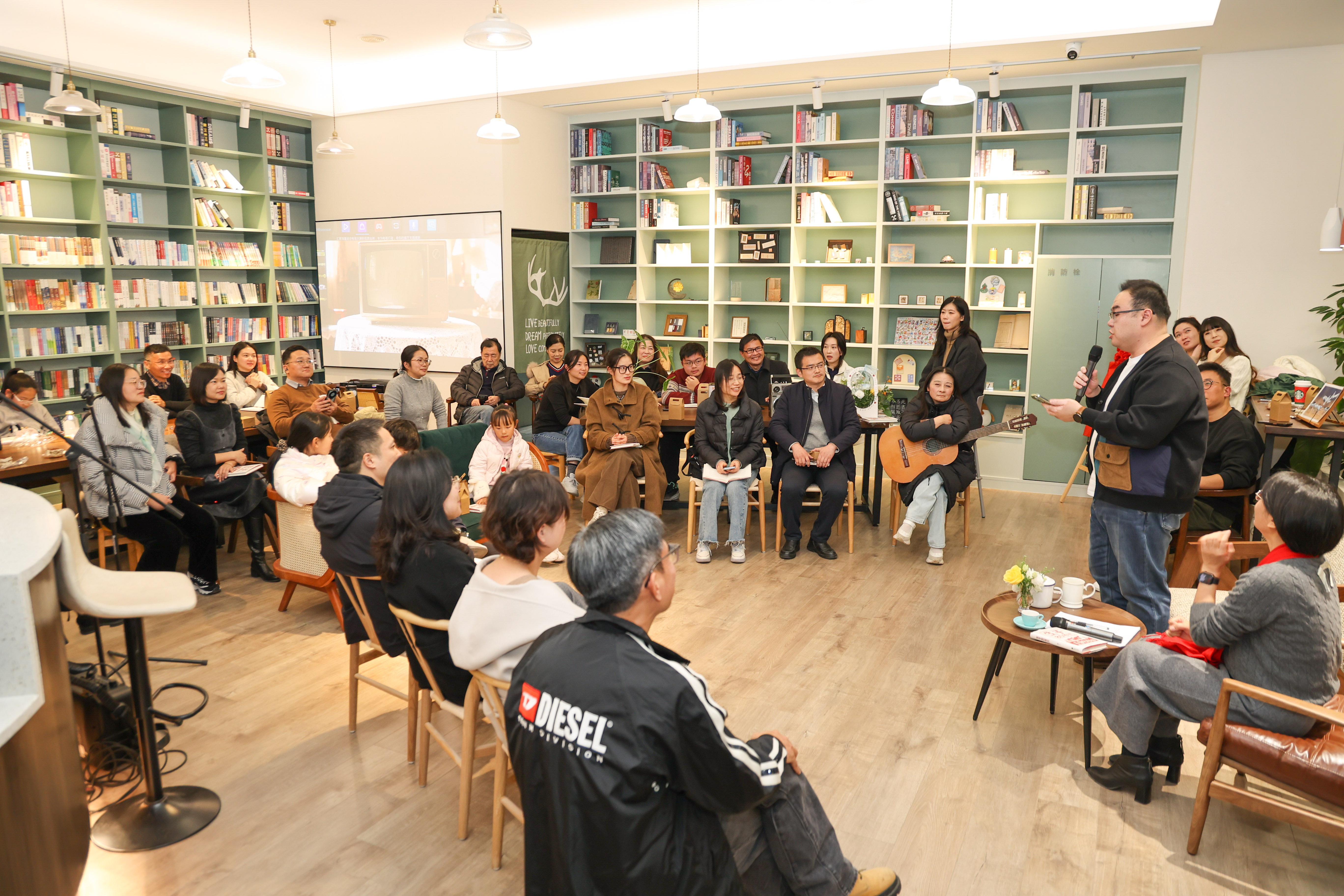 当晚的活动,在民谣吉他演唱中开启。一首《张三的歌》,让时光回到20世纪80年代。在轻松愉悦的氛围中,姚梦以一段轻松幽默的“脱口秀”分享创作心路。他坦言,写作《生于80年代》并非仅为怀旧,更是试图通过“自助餐”“游戏厅”“校服”“随身听”等具象化的生活场景,打捞深藏于个人记忆中的时代痕迹,为一代人的成长完成一次散文式的“考古”。