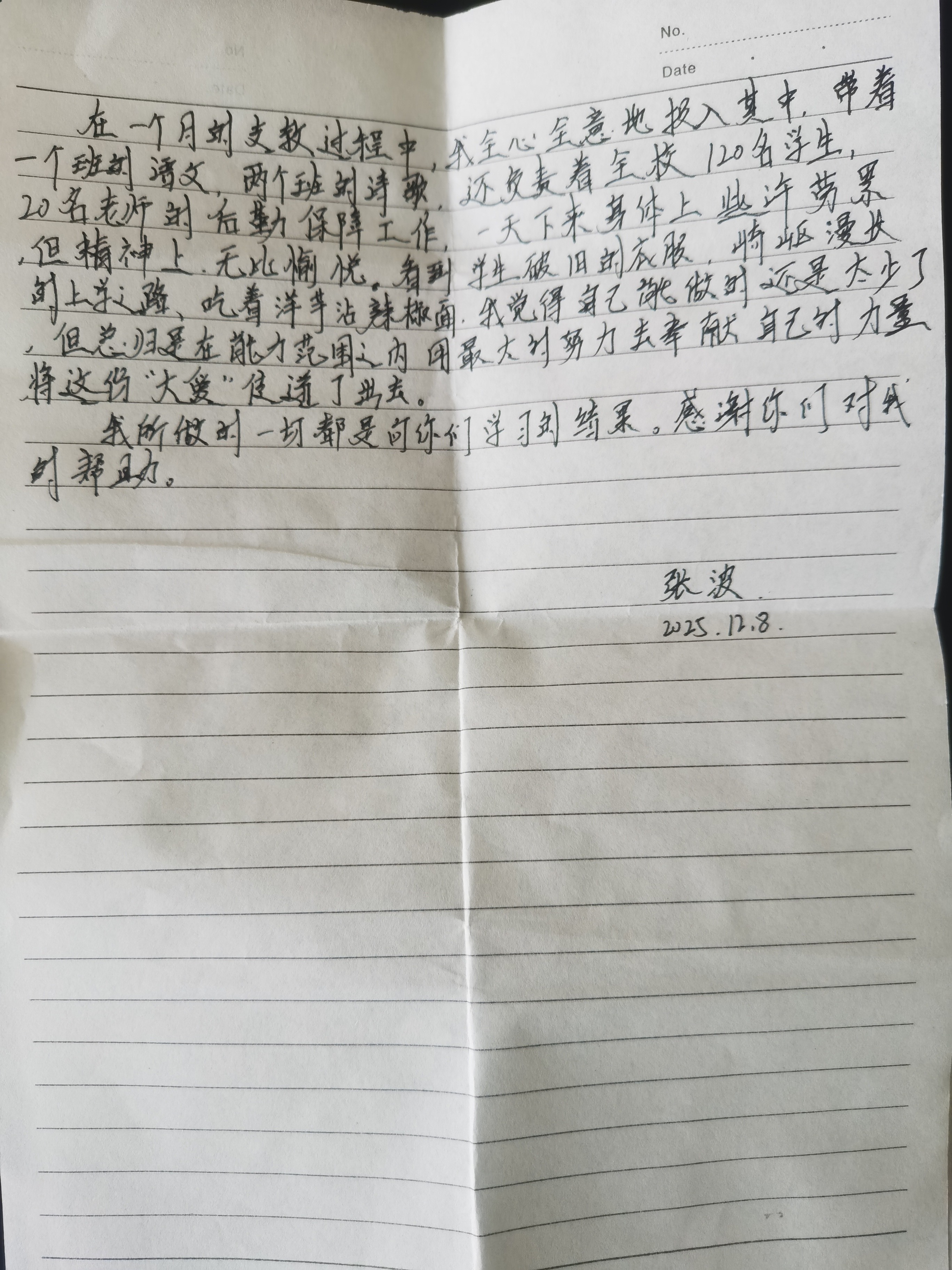 考入宁夏理工学院后,张波毫不犹豫地加入了校内的图书馆志愿者协会,也对志愿服务有了更深刻的理解。但他并不满足于此,“总觉得还能做更多有意义的事”。2024年下半年,正备战教师资格考试面试的张波突然找到了方向:“去支教,把东台传递给我的大爱,带给山区更多孩子。”