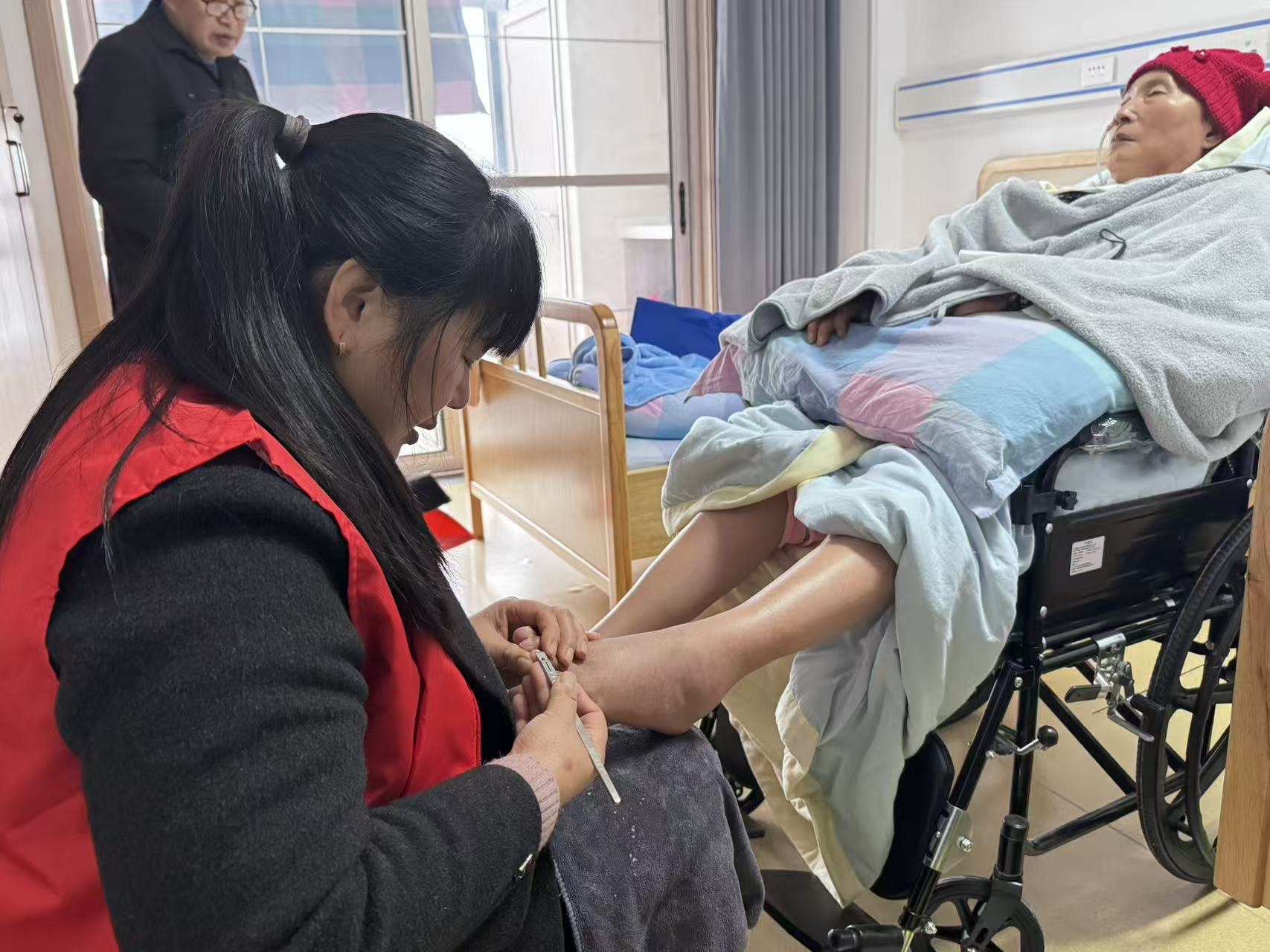 活动现场,志愿者分工协作、各尽所能。家住亭湖区新洋街道龙桥新园的志愿者吴晓娟,是一家足道店的经营者,她和朋友带来专业工具,为老人们提供免费修脚服务。面对老人们厚实的老茧和不便修剪的指甲,吴晓娟和员工们耐心细致地打磨、修剪,动作轻柔娴熟,还不时询问老人感受。修脚间隙,她们和老人拉家常,倾听老人讲述过往故事,分享生活趣事,温馨的话语驱散了老人的孤独感。