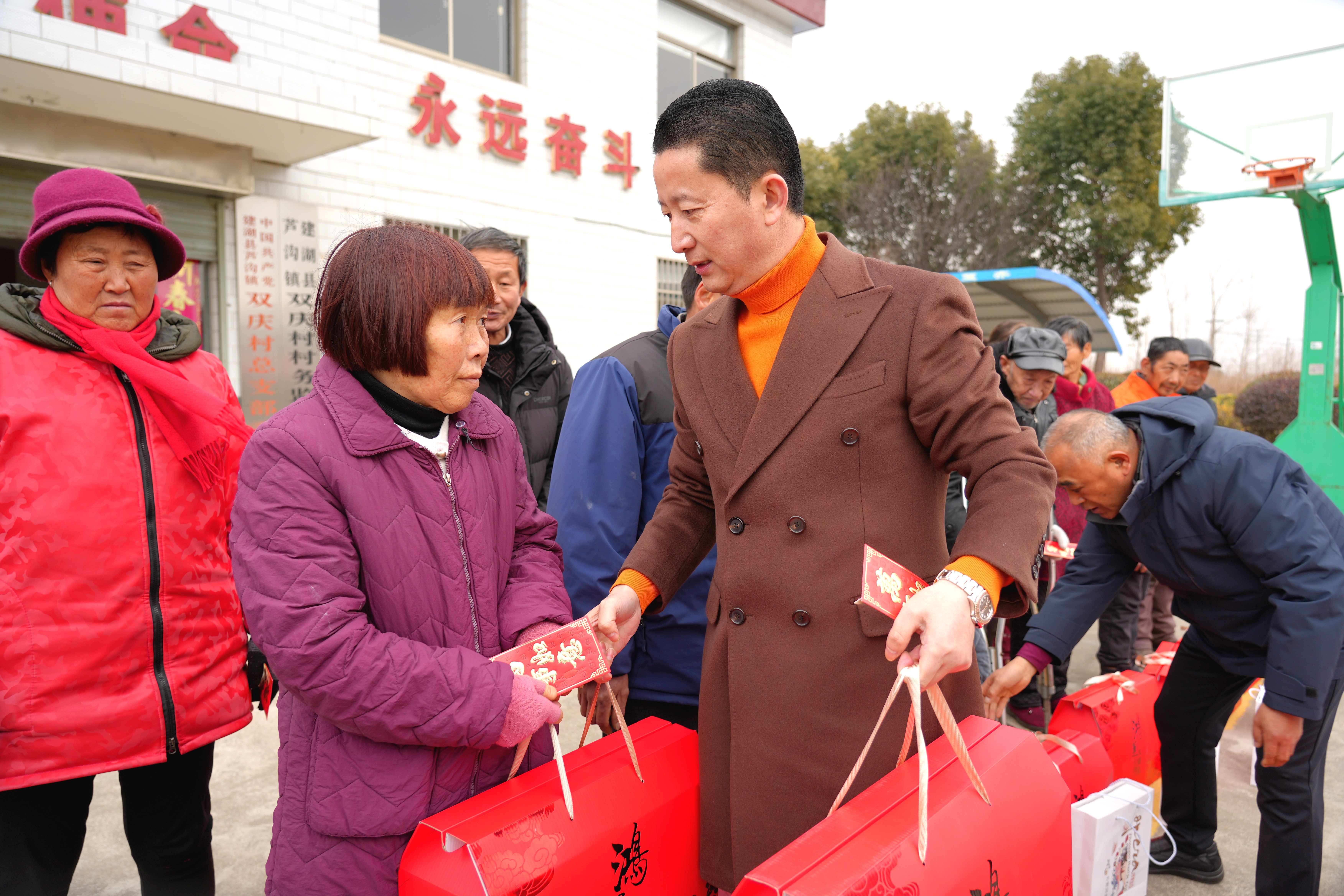 2月10日,腊月二十三,年味渐浓。在建湖县钟庄社区大王村,村民唐飞从爱心企业盐城兆广誉农业科技发展有限公司负责人吴军手中接过崭新的冬衣、丰盛的年货和慰问红包时,脸上漾开了笑容:“这时候还记着我们,心里暖烘烘的!”