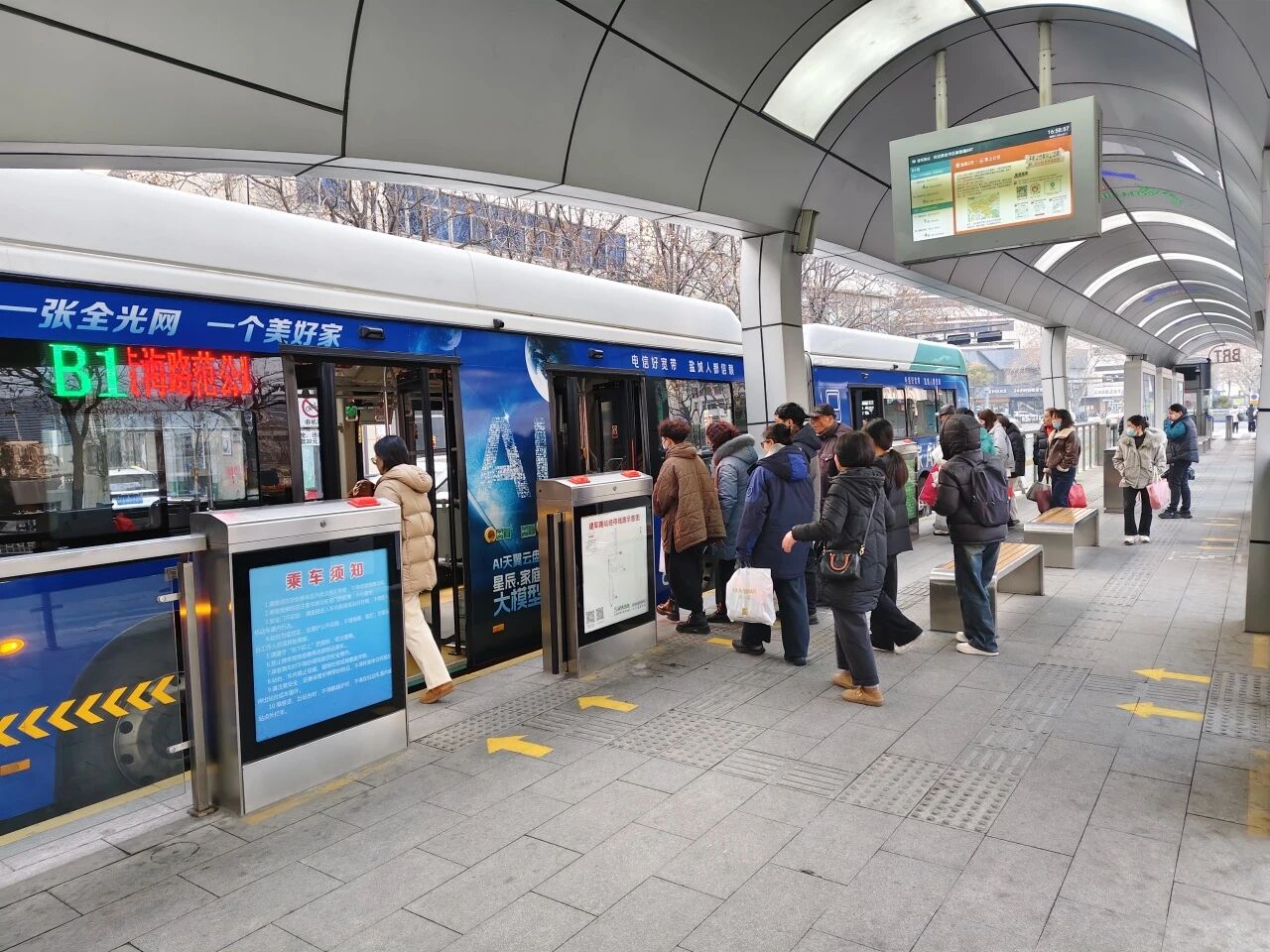 上午9时许,记者在市区解放南路新都路公交站点看到,站台内贴着新春窗花,年味扑面而来。市民有序进出站台,不少人脸上挂着笑容。“听说公交今天开始免费,我特意去伍佑菜场多买了些年货,提着大包小包也不用刷卡,直接乘车,既方便又省钱。”乘坐B2线的市民王大妈高兴地说。在她看来,免费公交不仅降低了出行成本,也让节日氛围变得格外温馨。