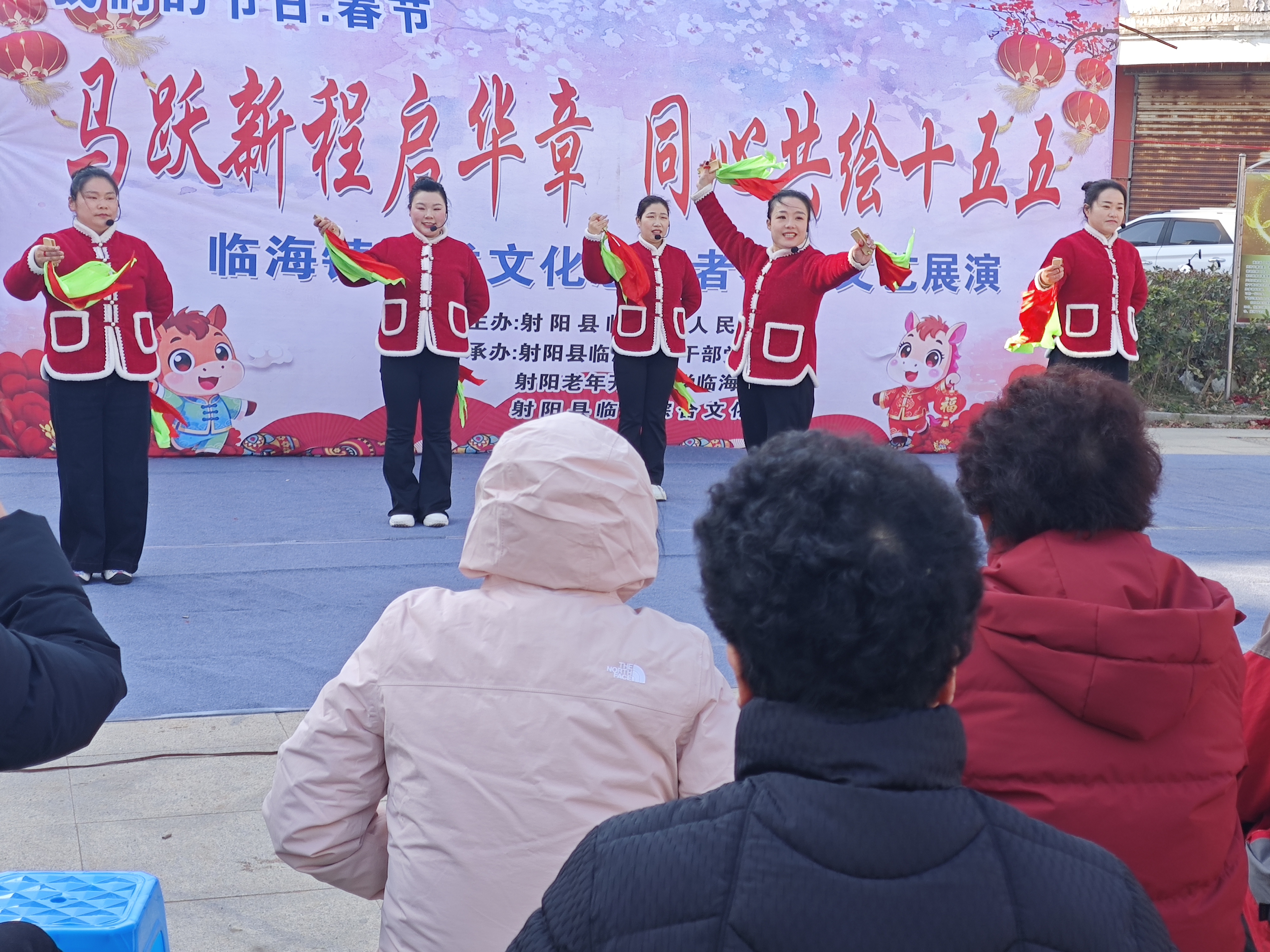 本次展演以“马年贺岁,文明传家”为主题,节目形式丰富、乡土气息浓郁。临海镇淮农社区广场舞《亲吻祖国》欢快开场,热情洋溢的舞姿瞬间点燃现场气氛;头厂村舞蹈队带来的莲湘表演《拔根芦柴花》独具地方特色,演员们身着艳丽服饰,舞步灵动,传递浓浓的新春祝福。
