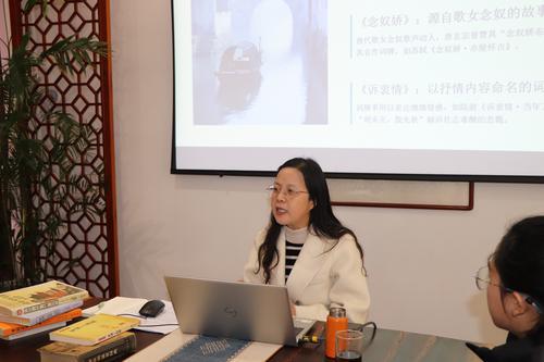 活动伊始,葛海燕老师从“词牌是什么”这一问题切入,深入浅出地阐释了词牌作为“曲调名称与格律格式”结合体的双重属性,并细致讲解了词牌的创作规范。她从隋唐时期燕乐催生“依曲填词”的起源讲起,用通俗易懂的语言将专业知识娓娓道来,帮助同学们理解词作为“诗的升华与拓展”的独特文学价值。