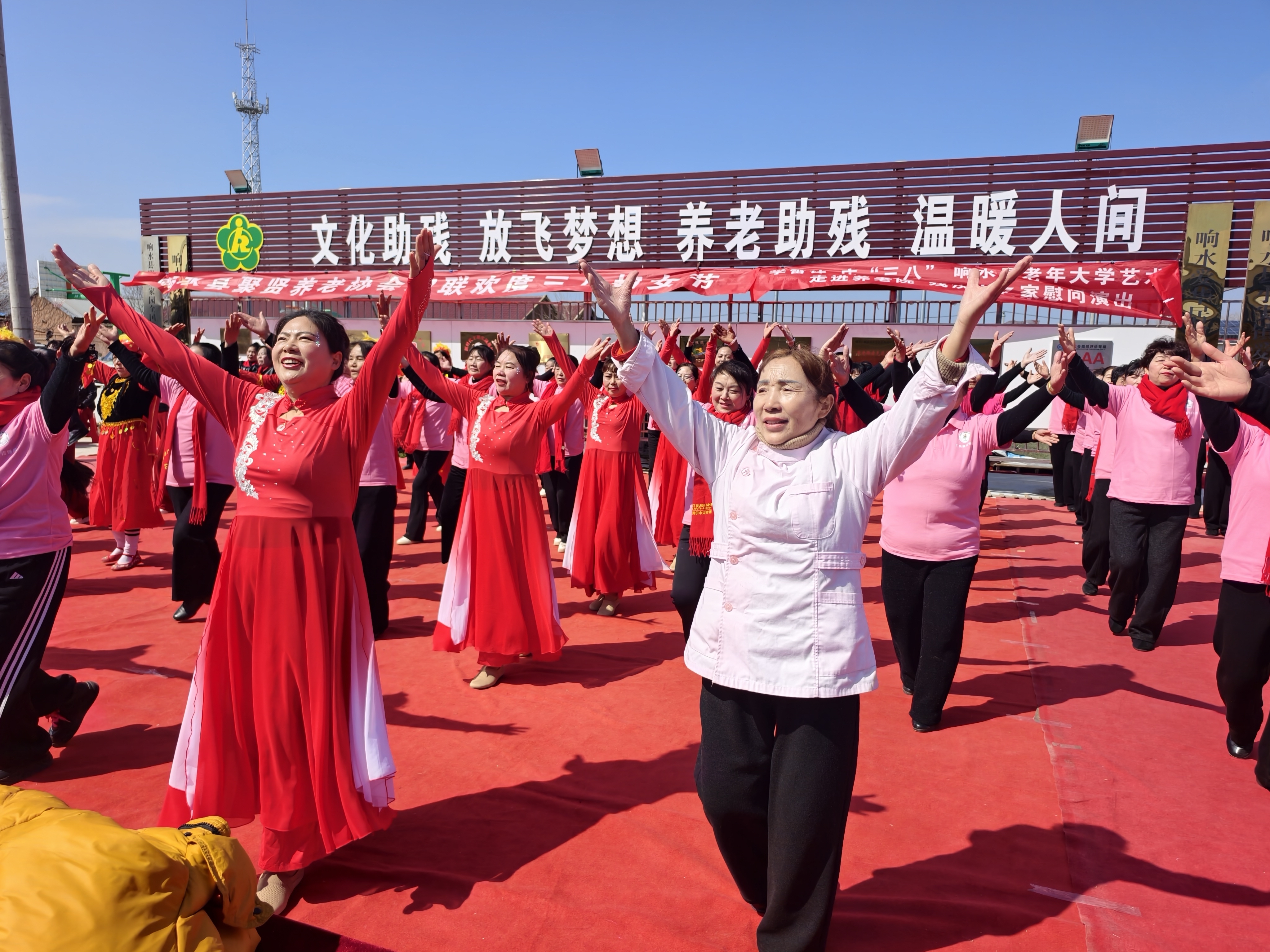 3月7日,响水县老年大学艺术团等20支文艺团队走进该县小尖镇周集社区爱华老年公寓,与住在这里的100多名残疾人、老人欢聚一堂,送上精彩的文艺节目。