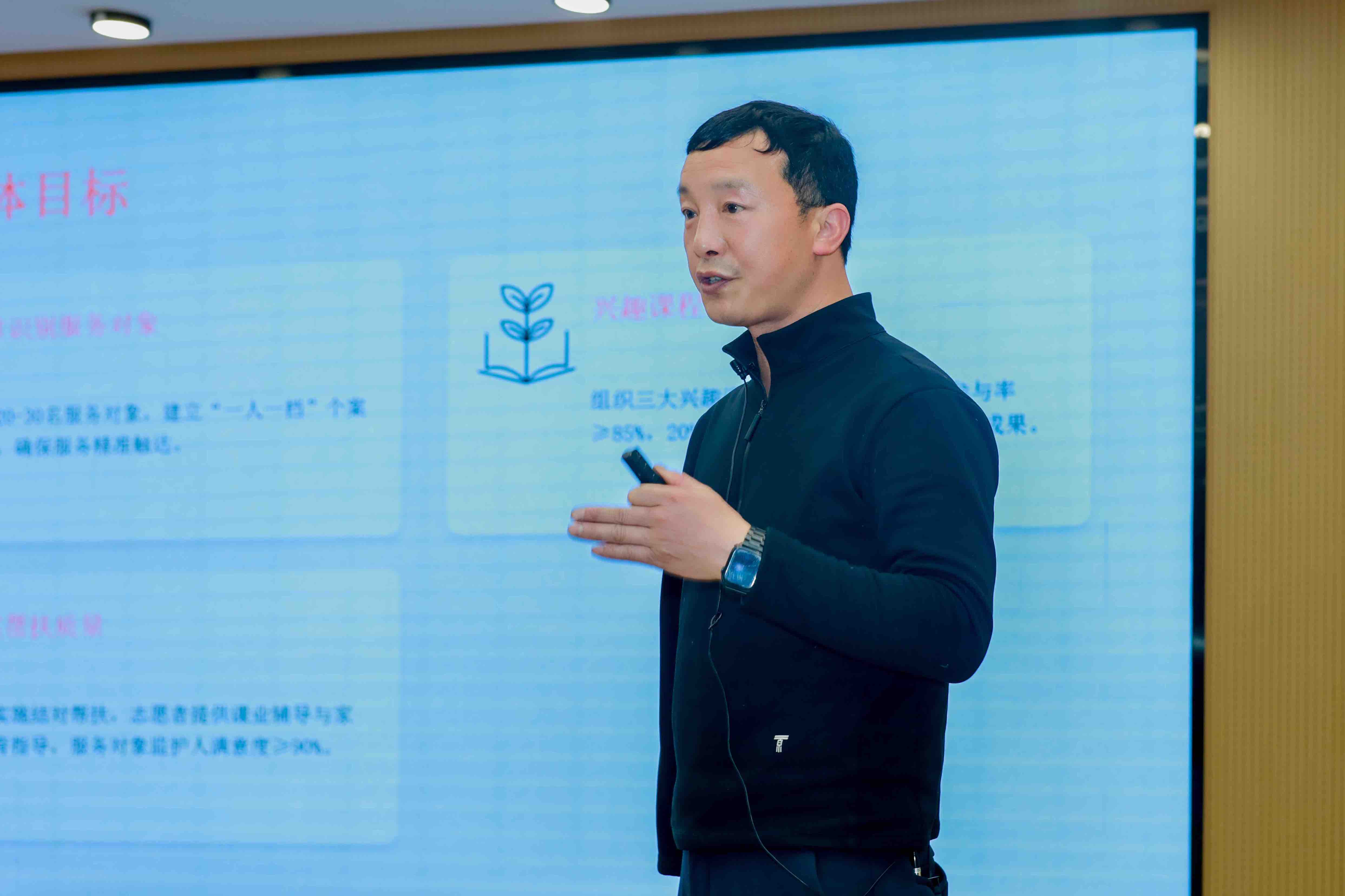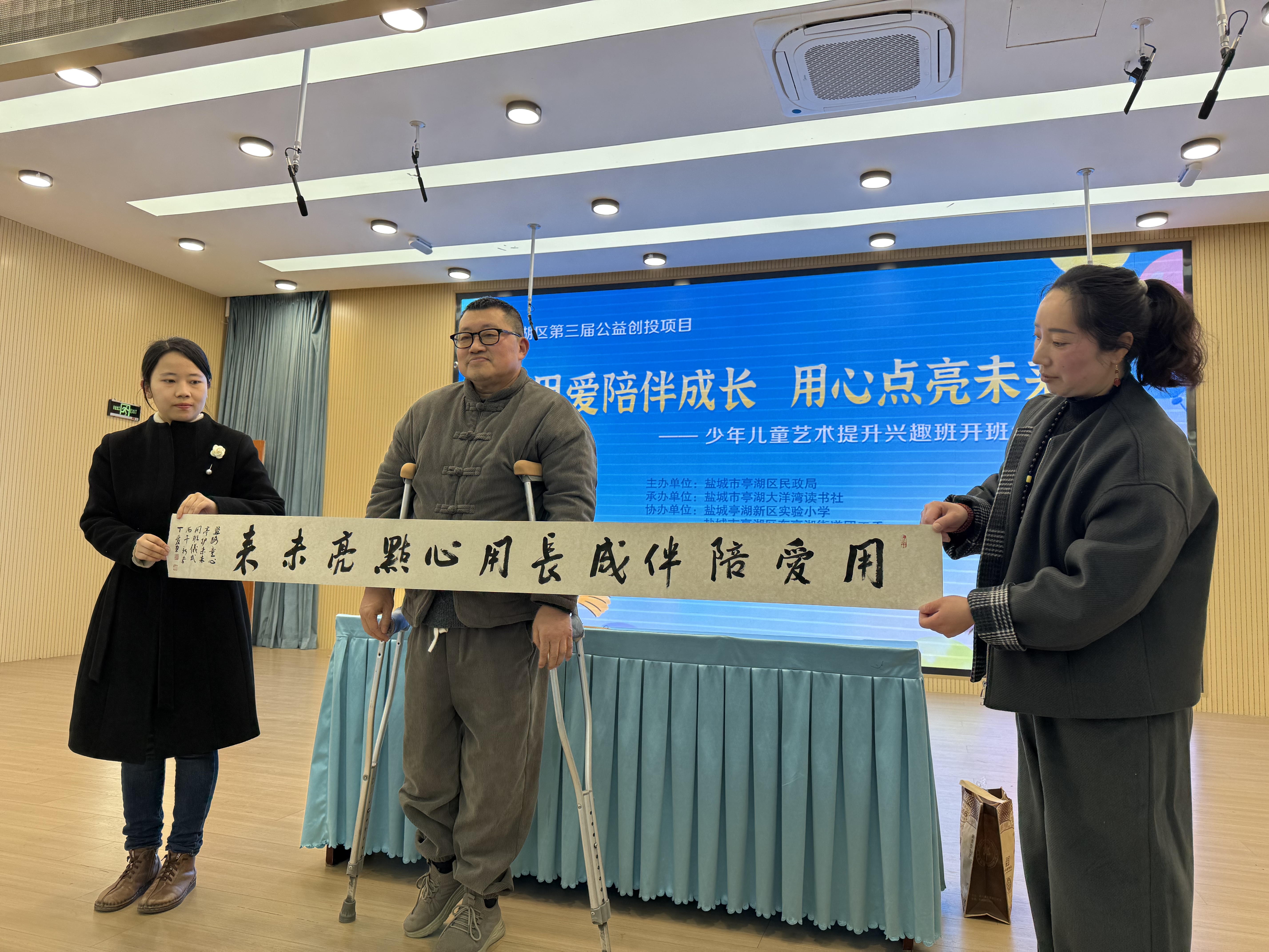 现场还上演了精彩的辅导老师才艺秀:书法老师丁爱东挥毫泼墨,写下活动主题传递大爱;竹笛老师侍展宇吹奏悠扬乐曲,让国风雅韵浸润心田;朗诵老师唐静深情演绎,用声音传递温暖力量。老师们的专业演绎,让孩子们眼中闪烁着好奇与欣喜,也让在场嘉宾感受到项目的专业与用心。据项目负责人陈羌介绍,该计划采用“兴趣培育+个案帮扶”双模式,兼顾艺术素养提升与精准关爱服务,全方位守护孩子身心健康。