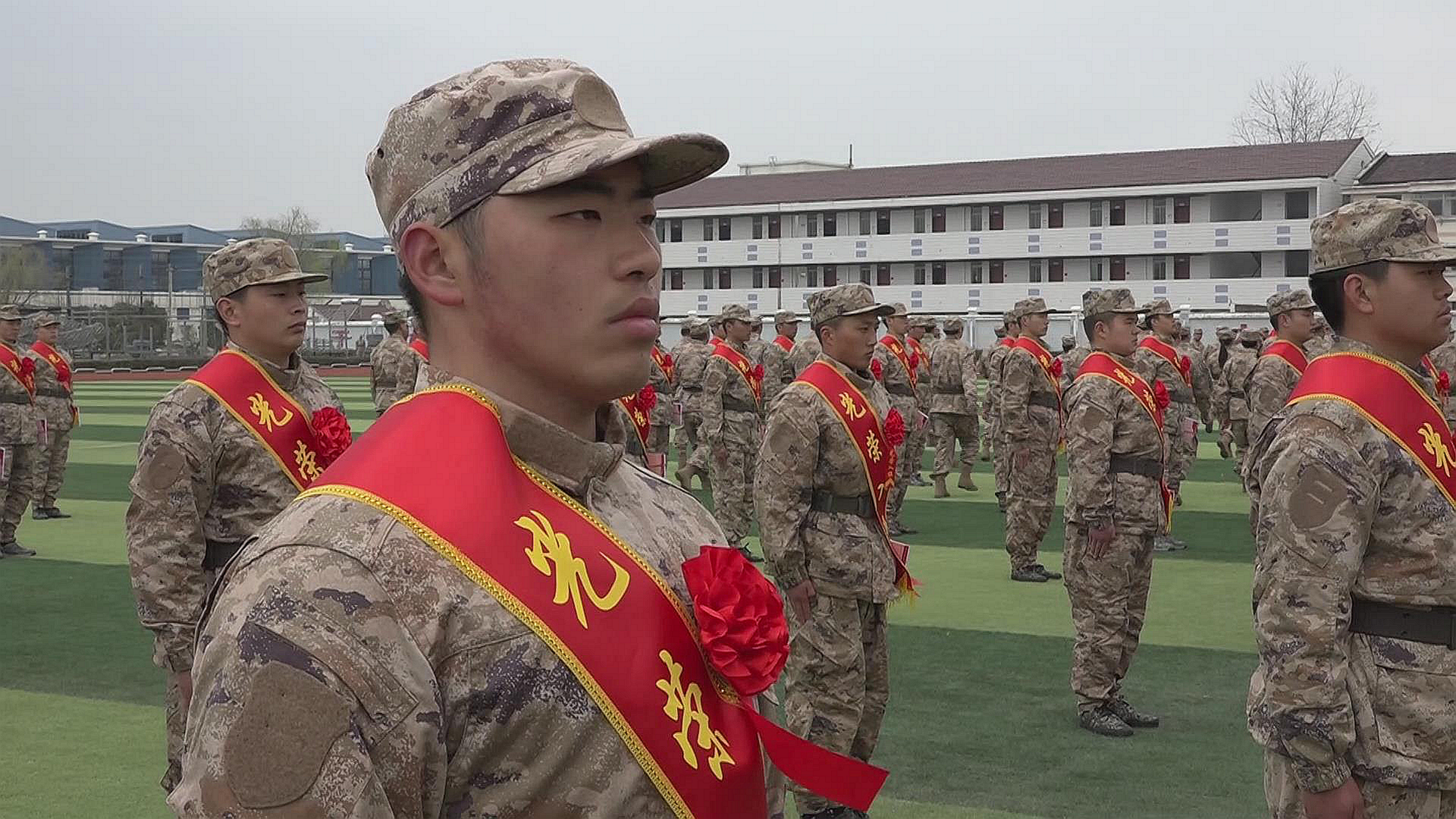 3月16日下午,射阳县2026年新兵出征仪式在该县役前训练基地举行。79名身着崭新戎装的新兵精神抖擞列队集结,身披绶带、胸戴红花,带着家人的殷切期盼,即将踏上从军报国的征程。