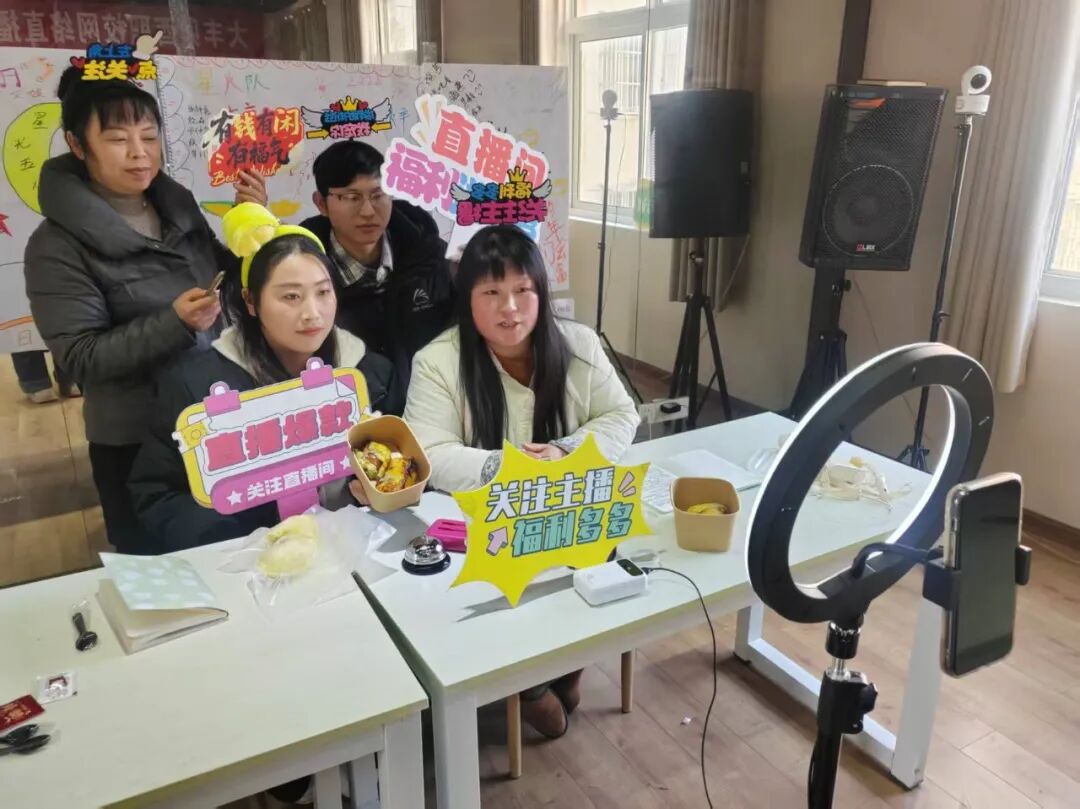 3月17日,春寒料峭,大丰区卯酉职业培训学校内却是一派热火朝天的繁忙景象。环形补光灯依次点亮,五个模拟直播台前,瓜果蔬菜与美妆产品整齐陈列,第12期培训班的学员正全神贯注地进行着“期末大考”——一场场生动的直播实战演练。