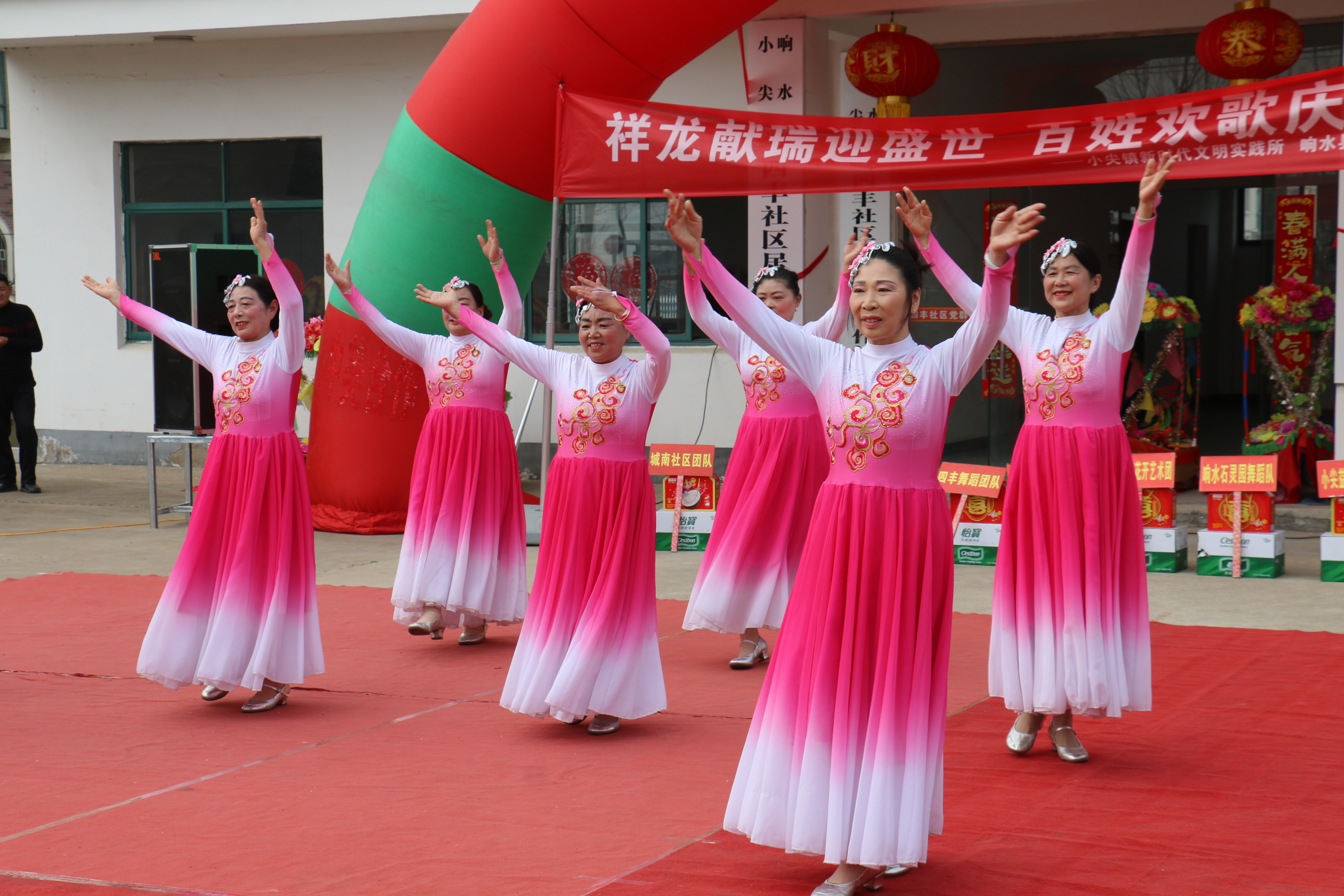 3月20日,响水县小尖镇四丰社区党群服务中心门前欢歌劲舞,热闹非凡,该镇新时代文明实践所、益起来公益协会牵头组织9家民间艺术团体,共同举办的“祥龙献瑞迎盛世,百姓欢歌庆抬头”文艺联欢会精彩上演,吸引当地数百名群众前来观看。