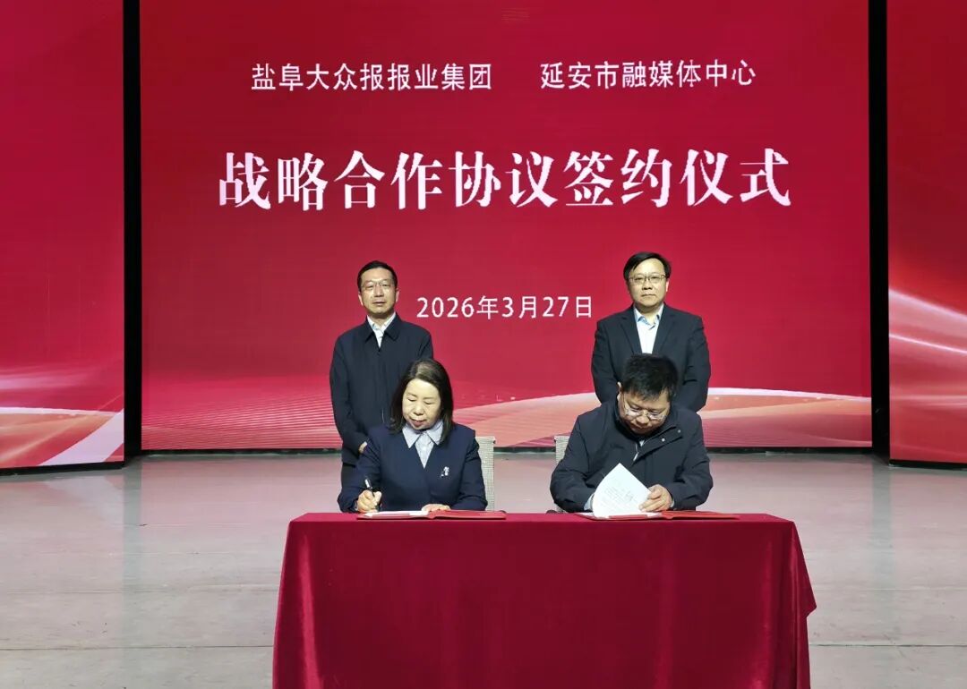 区域合作党媒先行,主动对接共谋发展。3月27日,在革命圣地延安,盐阜大众报报业集团与延安市融媒体中心签约战略合作协议,立足两地红色资源,凝聚更强宣传合力,以务实举措深化东西部协作,助力两市“十五五”开好局、起好步。盐阜大众报报业集团党委书记、社长周劲与延安市融媒体中心党委书记、主任蔡志诚出席仪式并见证签约。