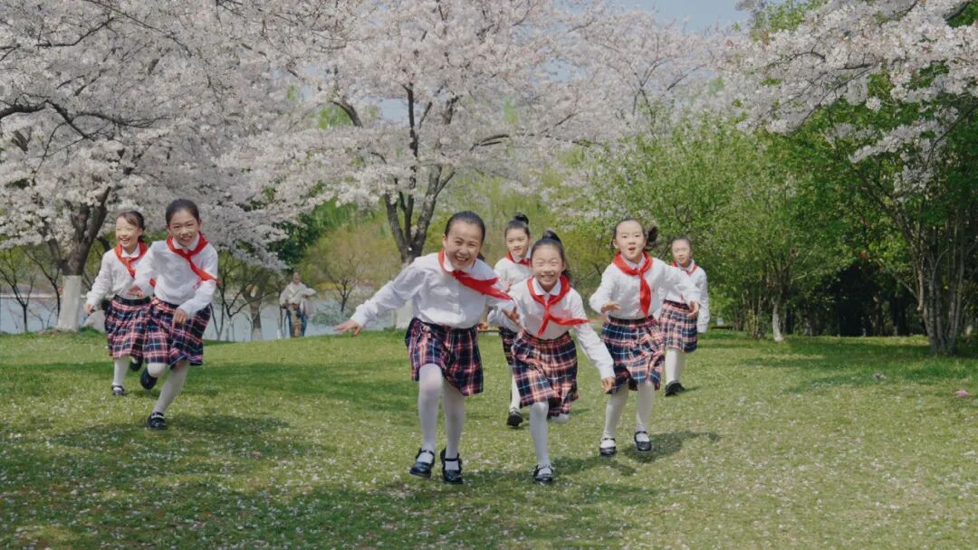 与此同时,盐城市串场河小学的“小水滴”们在盐渎公园唱响《一两风二两月》,将童年的千愁万绪融化在春天里。
