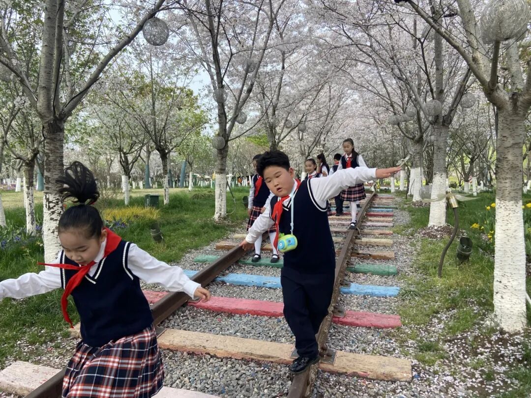 下午,盐城市聚亨路小学的少先队员们来到中华海棠园,演绎童声合唱《逐梦小树苗》,孩子对未来的期许在歌声中飞扬。