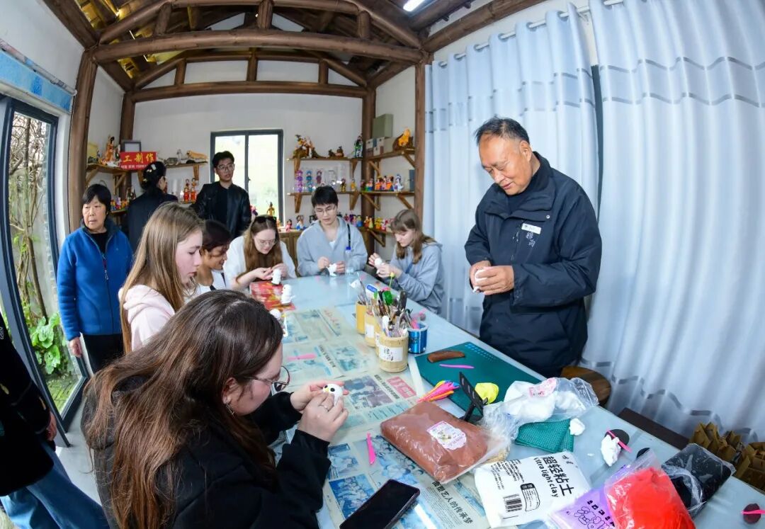 “阜宁大糕是中国传统美食,制作技艺已被列入非物质文化遗产保护名录。你们今天真的很幸运能体验这种技艺!”当天,南京过来的银发旅行团游客、南京理工大学俄语老师崔传江与留学生们在古村偶遇,他用熟练俄语和英语与大家交流,“没想到能在古村遇到你们,七彩阜宁值得你们一一探寻!”他说。
