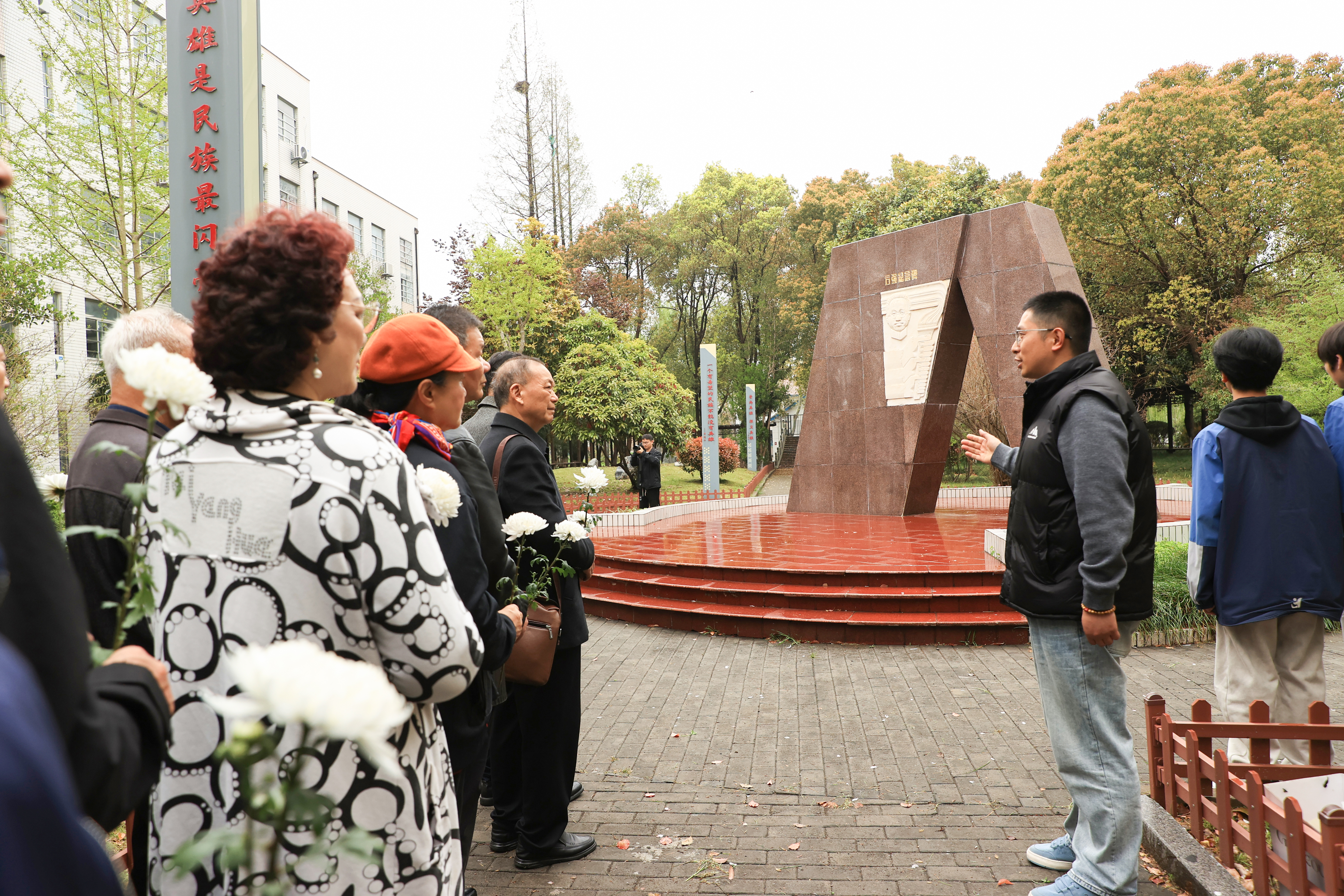 活动伊始,四位艺术家专程前往伍佑中学,在方强烈士纪念碑前举行庄重肃穆的祭奠仪式。1995年,伍佑中学在校园内建成“人字纪念碑”,以此缅怀这位为盐阜抗日根据地建设献出宝贵生命的革命先烈,让英雄精神激励一代又一代学子成长。