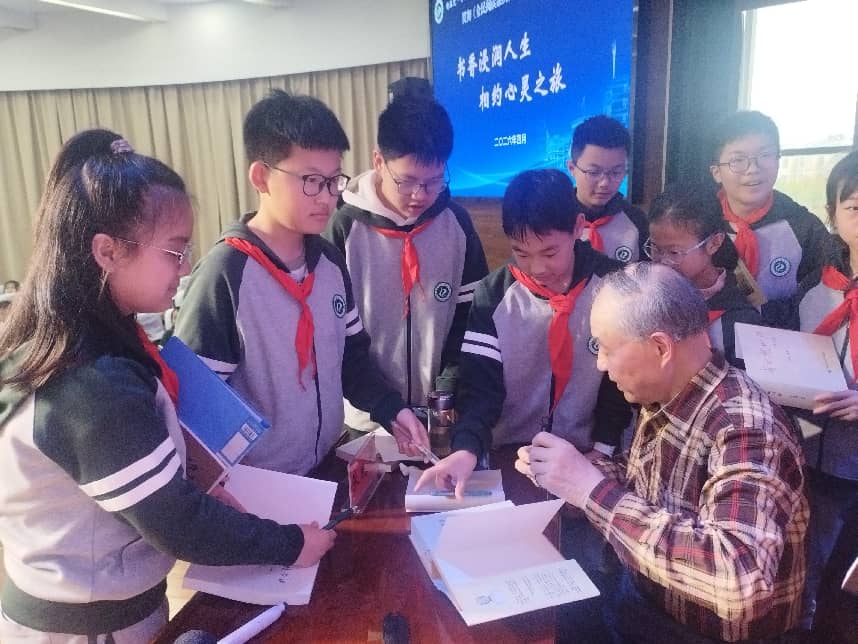 “读书,是文化的寻根;写作,是文脉的传承。”朱兆龙分享了自己数十年读书写作的感悟,鼓励孩子们多读书、读好书、善读书,从经典中汲取智慧,从乡土中寻找灵感,让书香伴随成长,传承家乡文脉。互动环节,同学们踊跃提问,朱兆龙耐心解答,现场氛围热烈融洽。