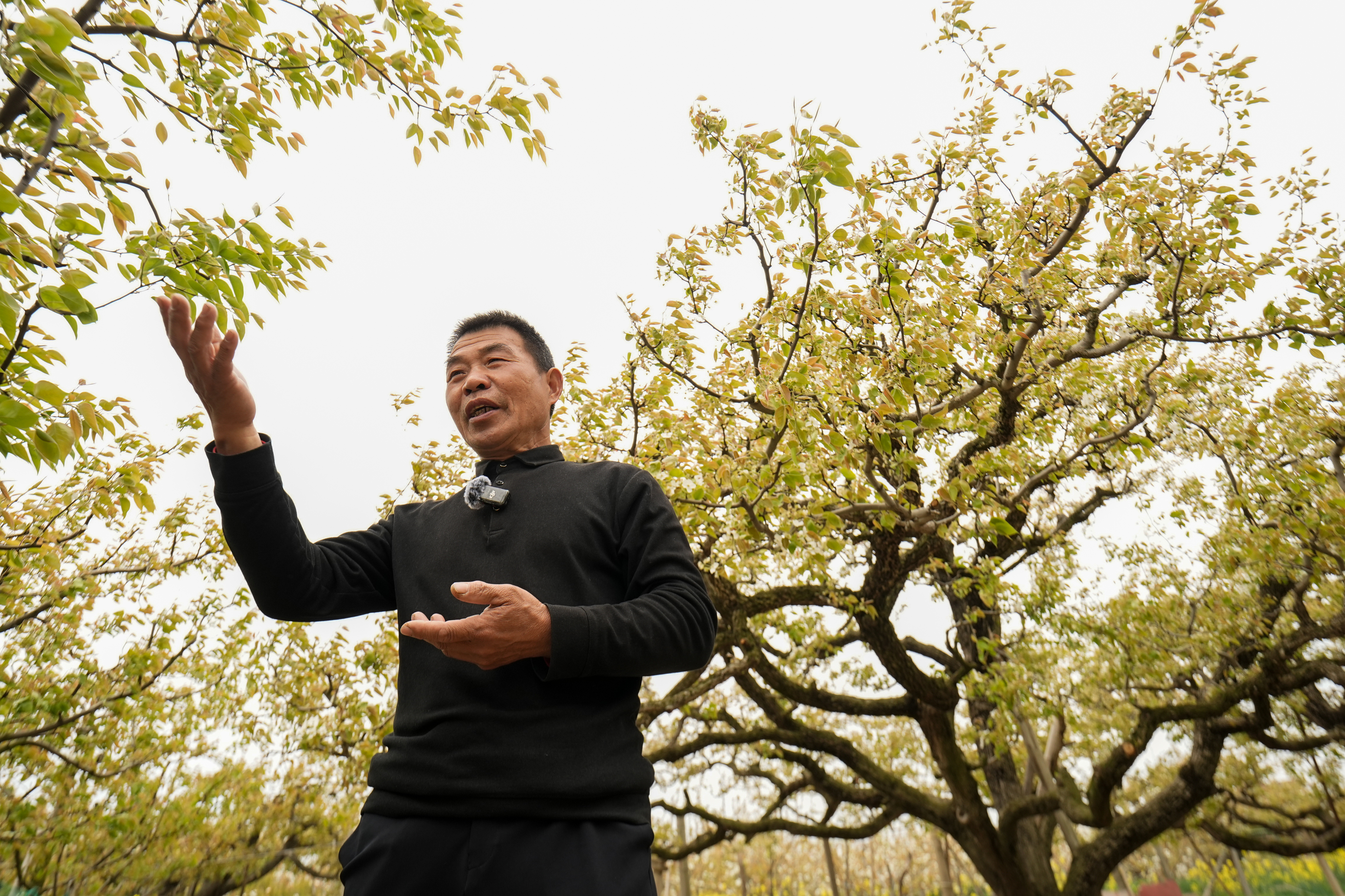 于江今年68岁,是种梨的“行家里手”。25岁就和梨树打交道的他,透过叶子,一眼就能看出梨树状态好坏。