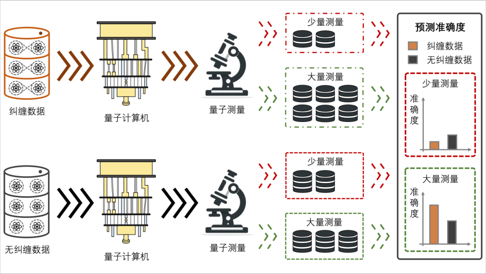 “现有研究通常认为量子纠缠有助于提升量子机器学习模型的性能。”罗勇说,该研究团队分析了量子数据纠缠程度、测量次数以及训练数据集的规模对量子机器学习模型预测误差的影响,首次证明量子数据的纠缠程度对预测误差的影响表现出双重效应,可以是积极的,也可以是消极的,而决定量子纠缠是否能提升量子机器学习性能的关键在于允许的测量次数。在足够次数的测量条件下,增加量子数据的纠缠可以有效减少量子机器学习模型的预测误差,或减小实现相同预测误差所需的量子数据大小。相反,当允许的测量次数很少时,使用高度纠缠的量子数据可能会导致预测误差增大。该研究为设计更先进的量子机器学习协议,特别是针对当前量子计算资源有限的量子计算机而定制的协议提供了重要理论指导。