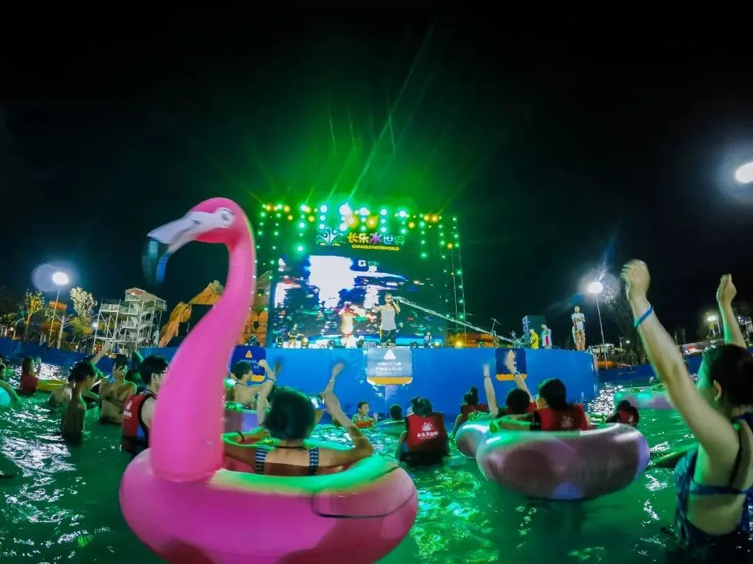夜游长乐水世界,夜场风暴炙热重启,全天白加黑,11小时超长待机,众人狂欢、现场气氛高涨,点燃夏夜激情。