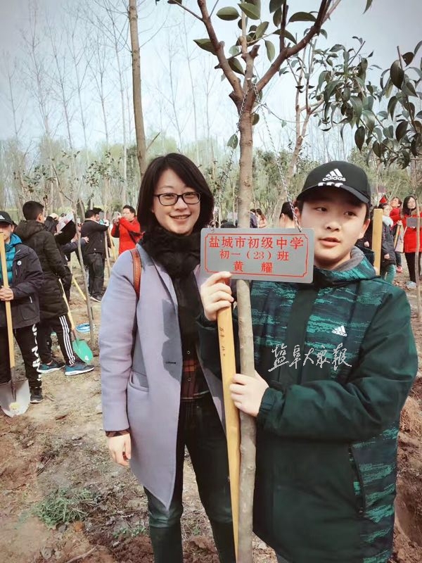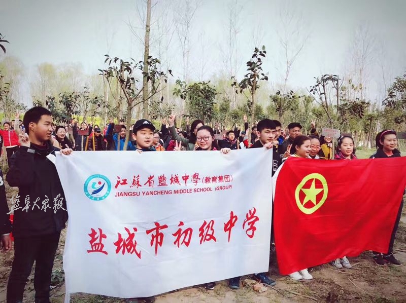 3月25日下午在盐城义务植树基地,盐城市初级中学初一初二年级56个家庭的成员,和20多位老师一同来到植树基地,开展亲子植树活动。