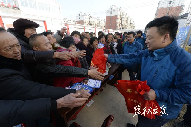 1月16日,2019年江苏省、盐城市文化科技卫生“三下乡”集中服务活动在阜宁县吴滩街道举行。上午9:30,阜宁县吴滩街道吴滩居委会新时代文明实践广场上人头攒动,十分热闹。严冬的寒冷并没有阻挡当地老百姓的热情,他们从四面八方赶来,感受活动带来的实惠和温暖。省、市31个服务团队现场接受咨询,解答疑惑,为老百姓送上实惠大礼包:科技、司法部门的工作人员开展实用技术、法律知识的培训指导;卫生部门的工作人员为群众提供咨询、义诊服务;文化、教育部门的工作人员为群众写春联、送福字、赠图书、现场演出。其他相关职能部门也开展了形式多样的现场咨询服务活动。图为卫生部门的工作人员为群众提供咨询、义诊服务。 记者 祁佳 文 周晨阳 摄