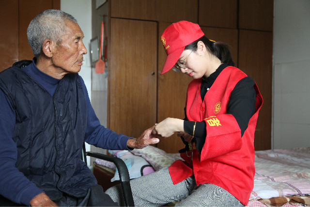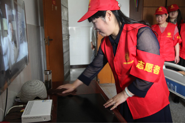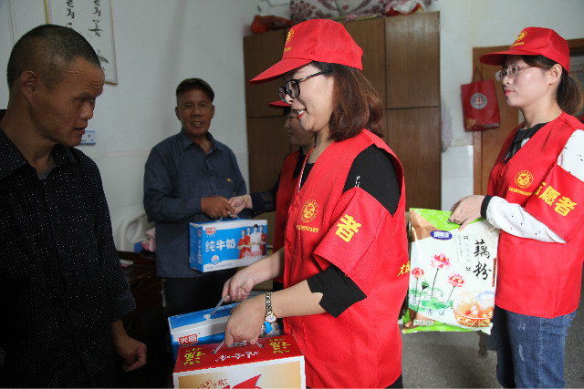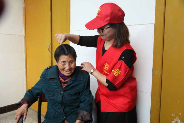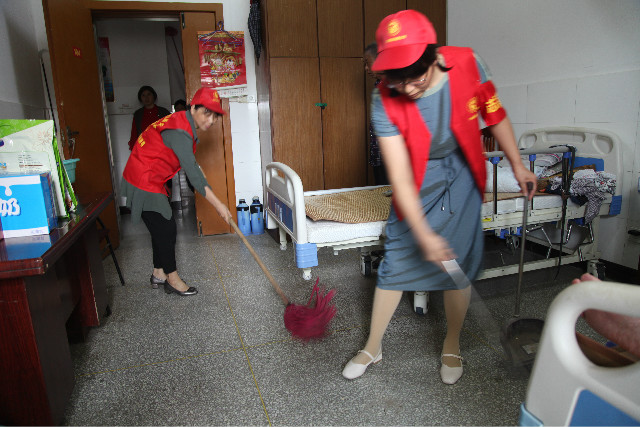10月7日,重阳节这天,盐城大纵湖旅游度假区,在度假区民政、妇联和老龄协会负责人带领下,26名巾帼志愿者放弃国庆节假日最后一天休息,冒着细雨,来到度假区敬老院,为老人们送去八宝粥、牛奶等慰问品,并为老人打扫卫生、剪指甲、梳头,与老人交流等,开展多项活动为老人服务。 图为志愿者开展服务时情景。 盐阜大众报报业集团全媒体记者 孙志华 通讯员 忠杰 庆宝 摄