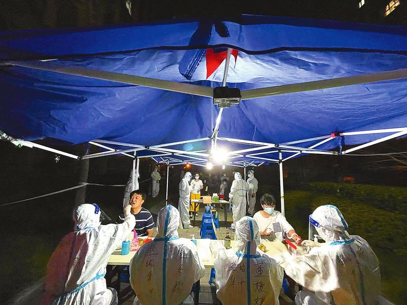 △队员们夜以继日连续作战。 (市卫健委供图)