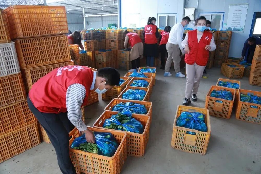 在野绿芳地蔬菜家庭农场,工作人员和志愿者们争时间抢速度,将各类蔬菜打包装车,大家齐心协力,现场繁忙而有序。