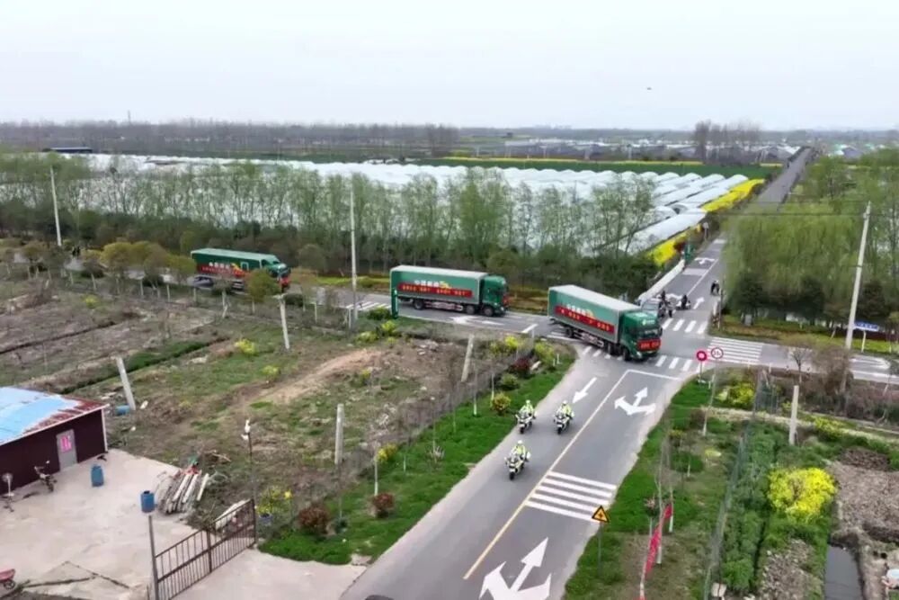 3月31日下午,为缓解眼下上海蔬菜短缺的问题,三辆满载着新鲜蔬菜的大卡车,从大冈镇野绿芳地蔬菜家庭农场出发,驶向上海闵行区。
