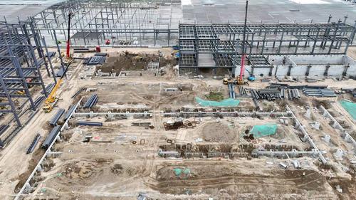 10月3日,位于大丰高新区的蜂联创业空间科技产业园项目施工现场,300多名工人正在加紧施工,确保工程进度。该项目是省重点工程,目前,桩基工程和地下基础已全部施工完成,计划10月底完成所有单体结构及室内地坪施工,12月底完成厂区室外配套工程。项目建成后,将为大丰区能源供应保障和能源结构转型提供坚实支撑,对全市动力电池产业也将产生积极示范效应,助力全市建设绿色能源之城。记者 单丹 刘超 摄