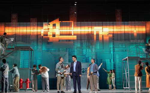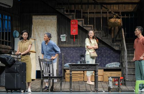 灯光渐暗,帷幕拉开。沧桑斑驳的房子,错落有致的布景,烟火气十足的街区缓缓露出面庞,吆喝声、聊天声随之而来,熟悉的市井烟火气就这样展现在观众眼前。一场剧看完,由怀旧的老房到崭新的街区,两者完美融合在一起,时代气息充满舞台。其间,时不时穿插些南京方言对话、吆喝等接地气的表演形式,无一不让观众感到新奇。
