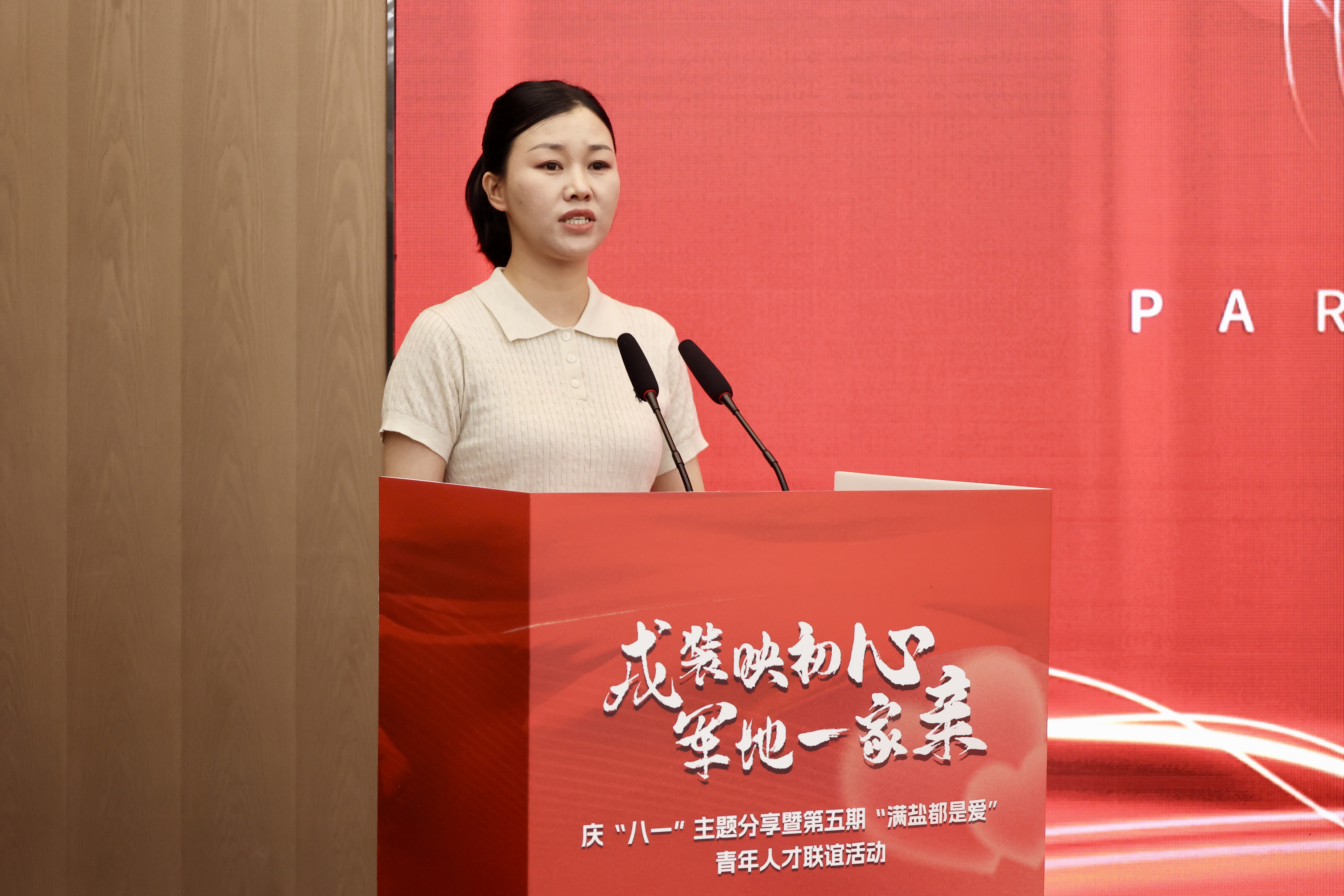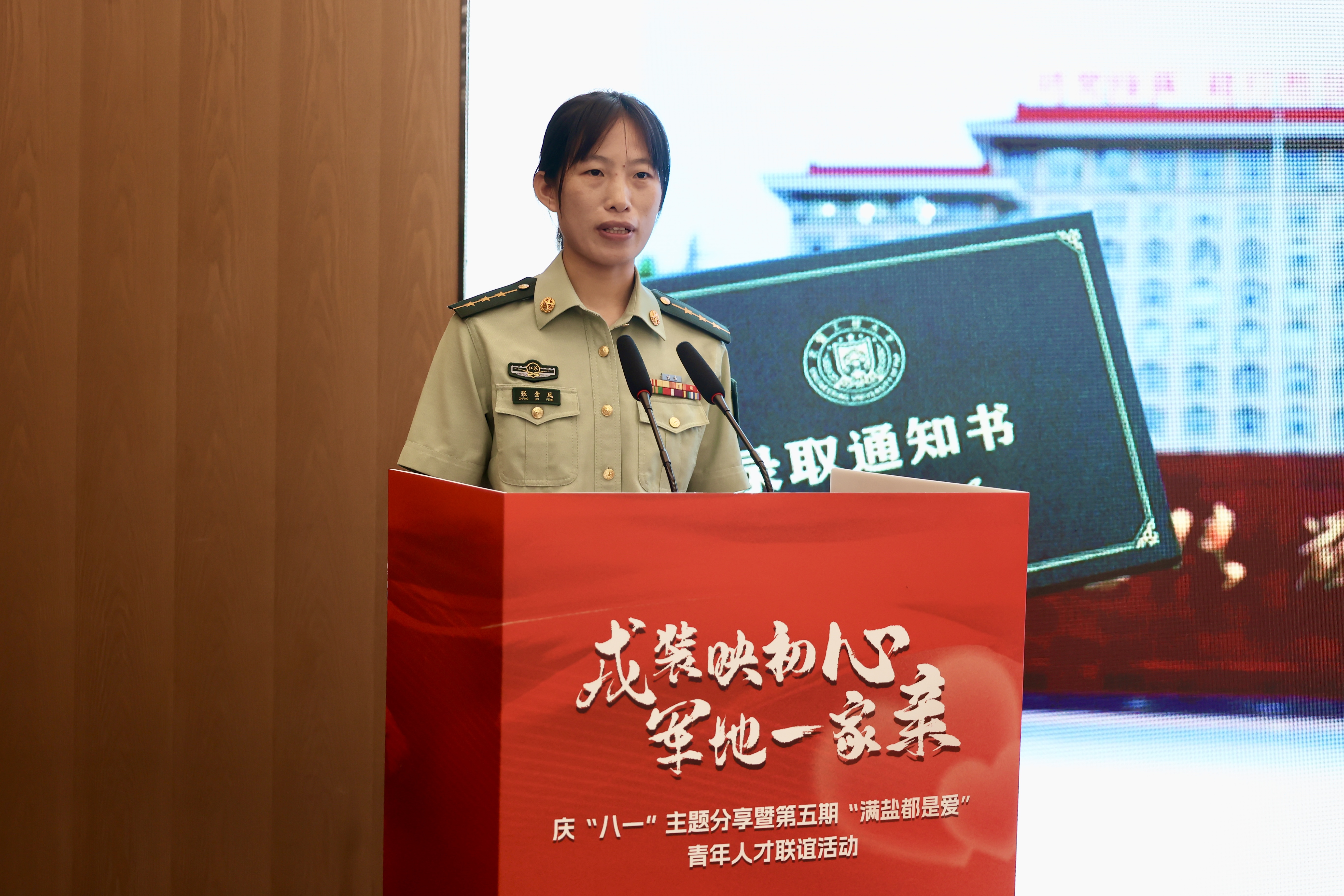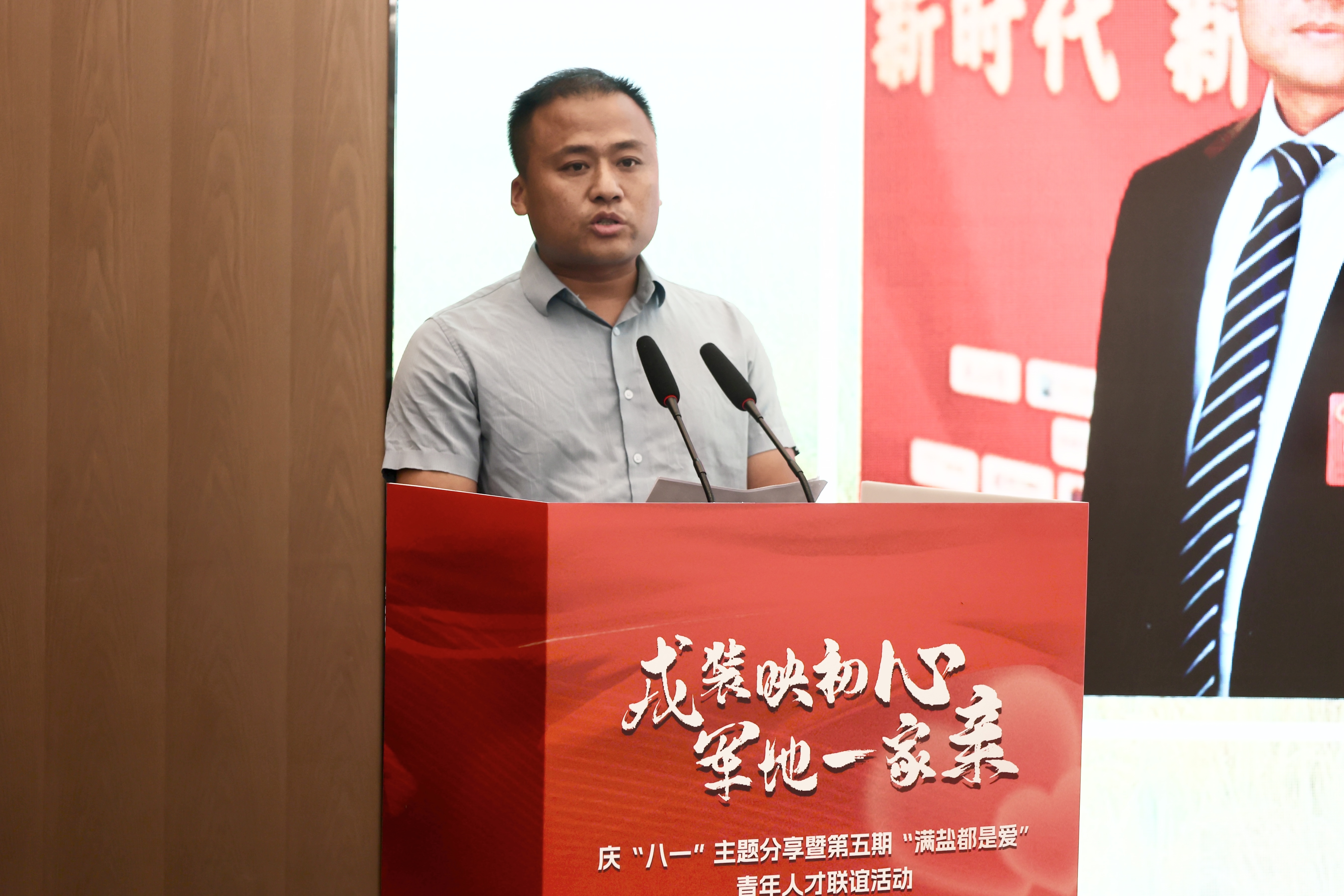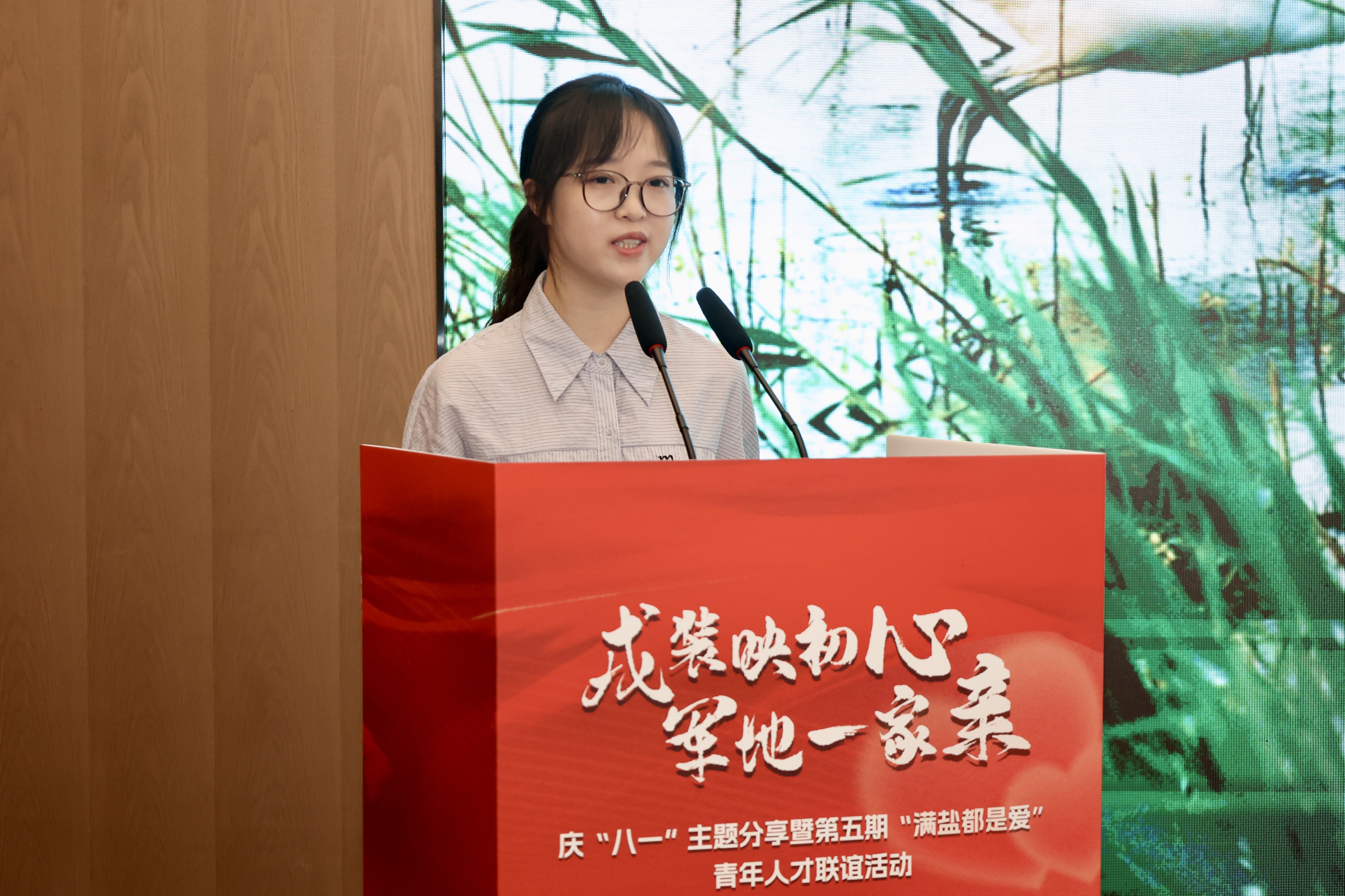 绿荫梁盛夏,军旗别样红。7月29日下午,盐城市“戎装印初心军地一家亲”主题分享暨第五期“满盐都是爱”青年人才联谊活动在大洋湾举办。来自驻盐部队官兵、军嫂、退役军人及军地青年人才齐聚一堂,共庆建军佳节,共话军民情谊,共赴美好之约。