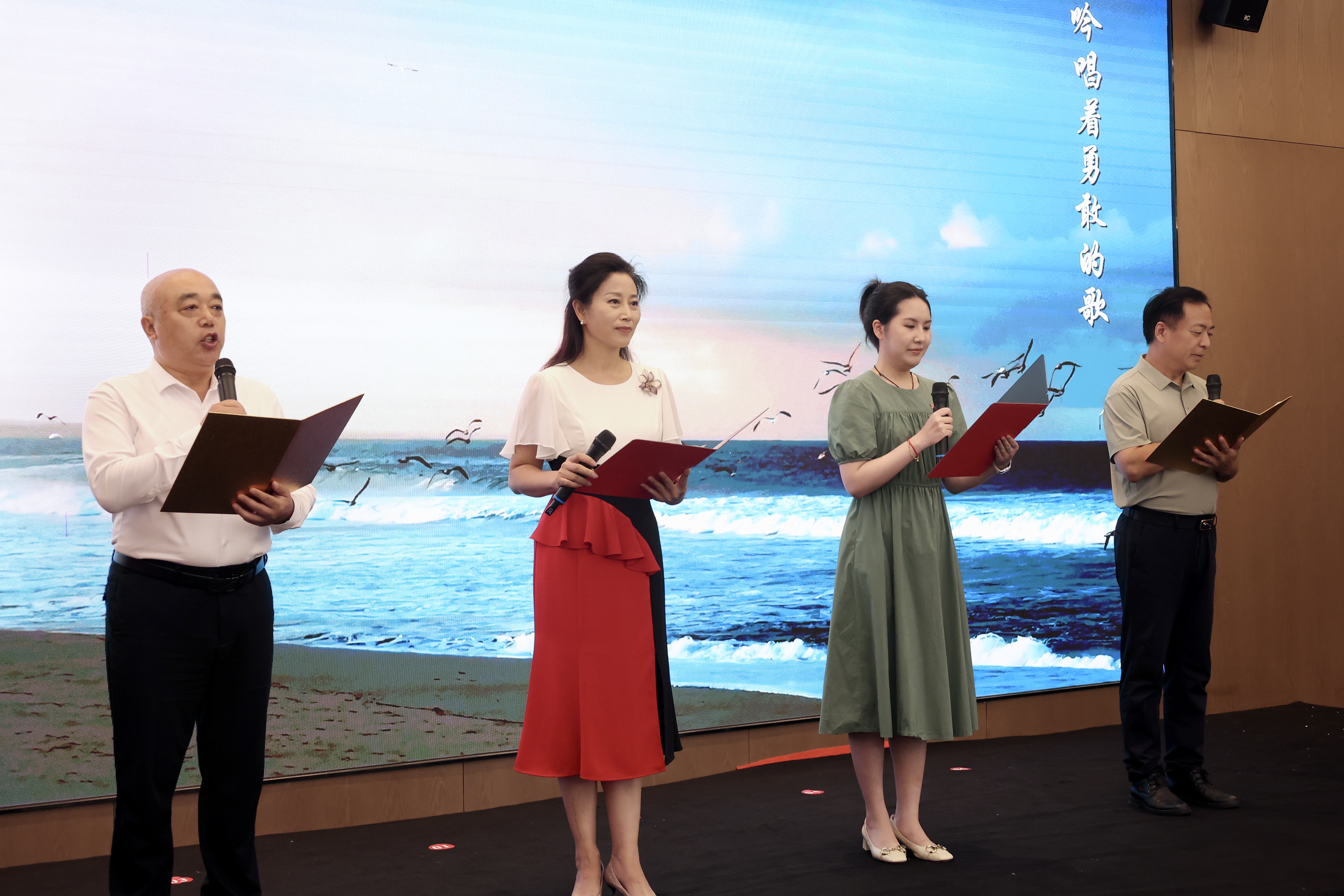 陈晓艳、郭海峰对唱《我和我的祖国》,表达对伟大祖国的深切热爱,抒发浓厚的家国情怀。朱强、朱广忠、夏丽晖、王笑研四位老师现场表演配乐诗朗诵《军魂》,用文字谱出盐阜大地的双拥旋律,以诗行铸就永不褪色的铁军军魂。