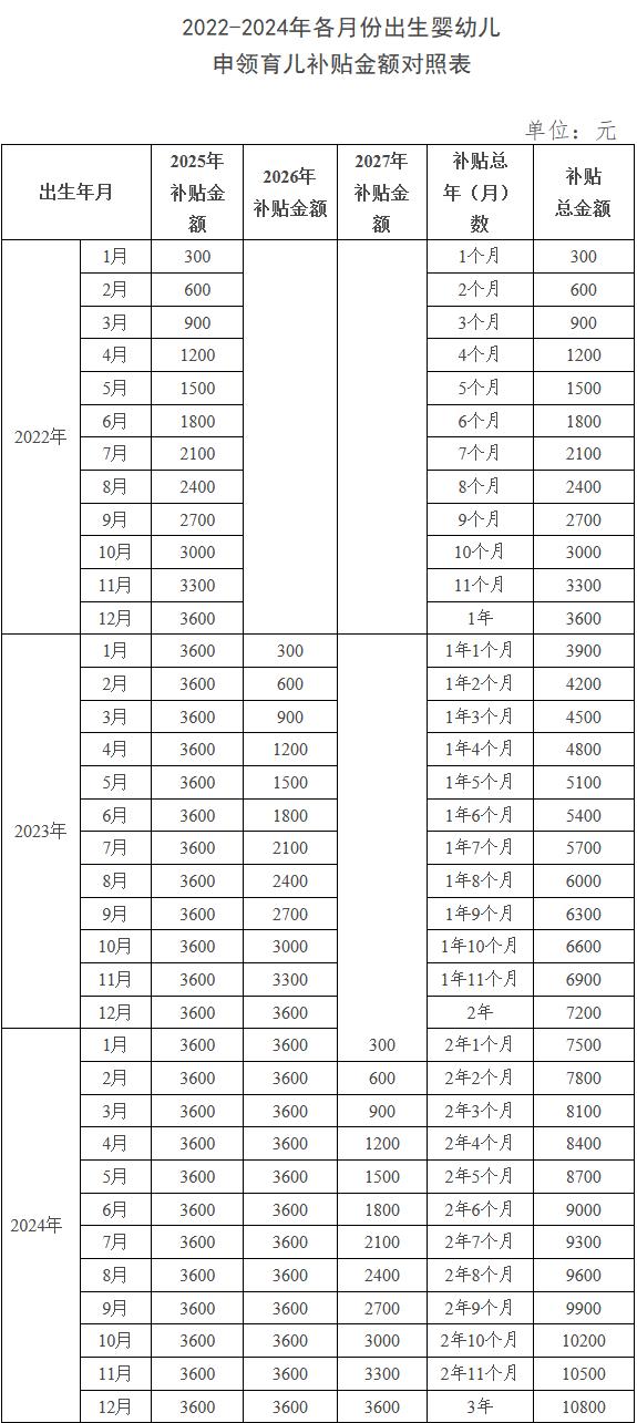 2022年出生的宝宝:可申领1次补贴,必须在2025年提出申请,截止时间为2025年12月31日。