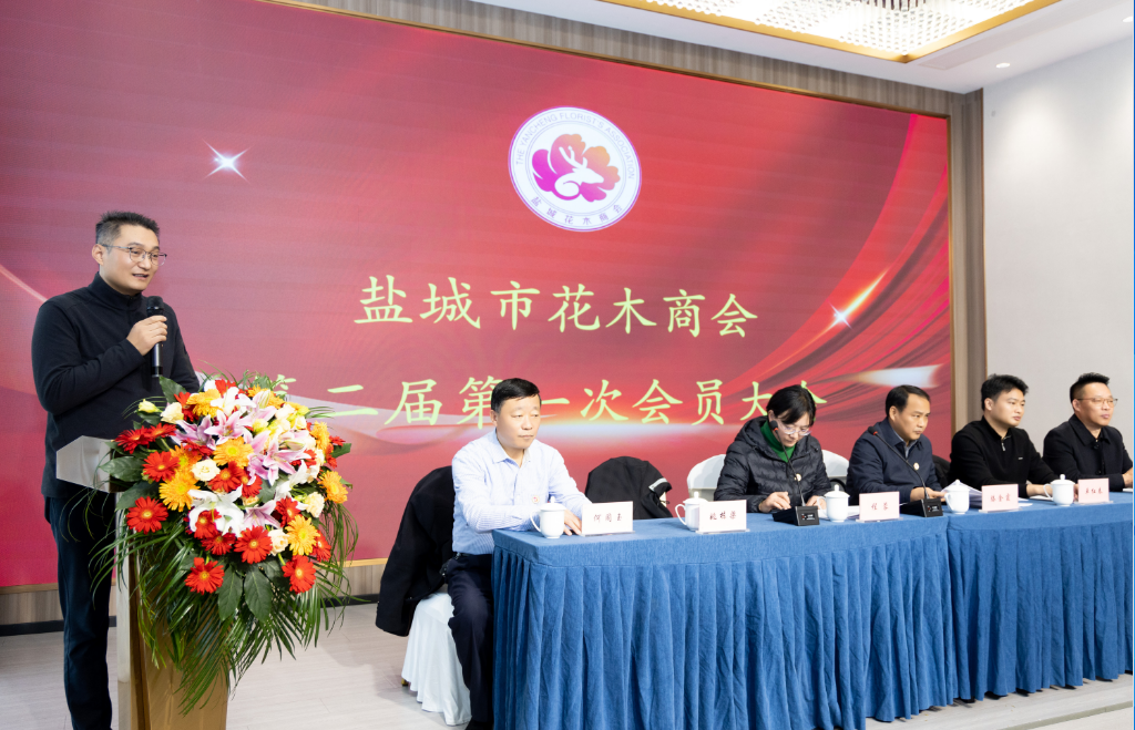新当选会长、盐城市亭湖区十二月坊园艺场总经理姚栋梁代表新一届理事会作表态发言。他表示,随着人们生活水平的提高和对美好生活的向往,新一届理事会将以更高站位把握花木产业前所未有的新发展机遇,建立“植物医院”,结合电商平台,推动产业升级,拓展市场空间,加强与国内外同行的交流与合作;履行社会责任,积极参与公益事业,以更高标准建设高水平社团组织,团结带领全体会员单位促进盐城花木产业高质量发展。